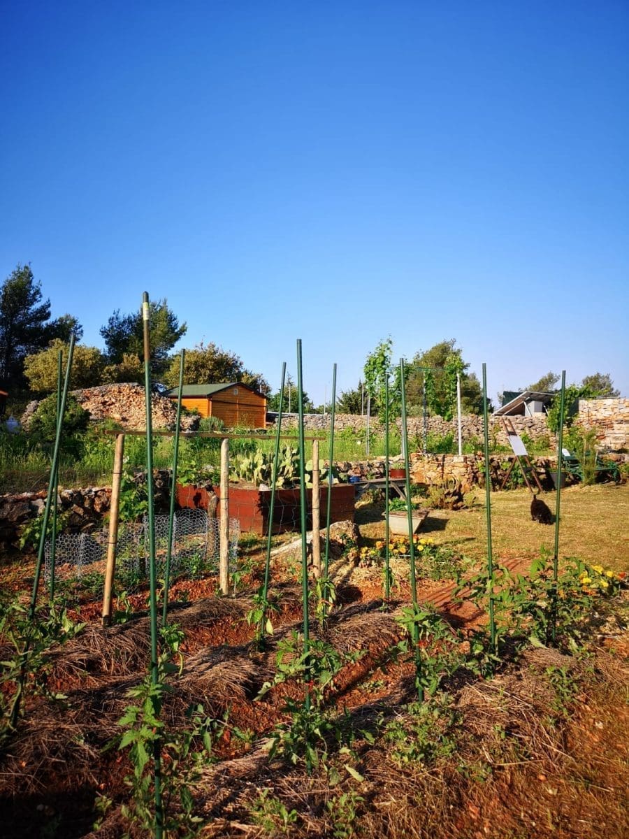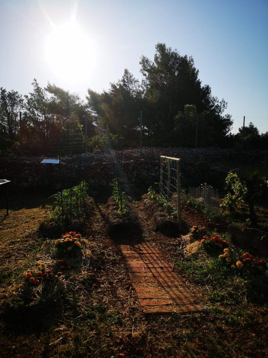 Kao i drugi vrtovi na otoku, i ovaj je plod dugotrajnog, dobro planiranog rada: prostor nekadašnjeg vinograda i polja lavande i ružmarina, obrastao raslinjem, pažljivo je raskrčen, a stari suhozidi ručno su presloženi kako bi se parcela pravilno podijelila na šest manjih polja. U gredice je potom posađeno sjemenje te prenesene reznice i odrasle samonikle biljke sakupljene na različitim područjima otoka Hvara.