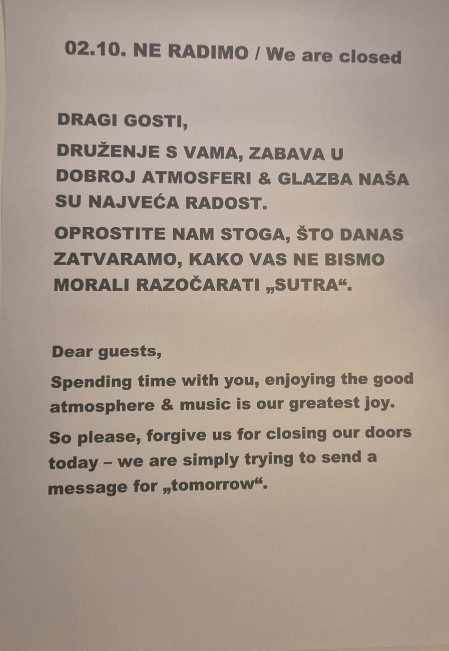 U ime brojnih ugostitelja grada Hvara, čija je ponuda neodvojivo vezana uz glazbu, najavljen je tihi protest koji će se održati u srijedu, 2. listopada, na Dan grada Hvara. Tijekom ovog simboličnog dana, ugostitelji će zatvoriti svoje poslovne objekte u centru grada kako bi ukazali na ozbiljne probleme s kojima se suočavaju.