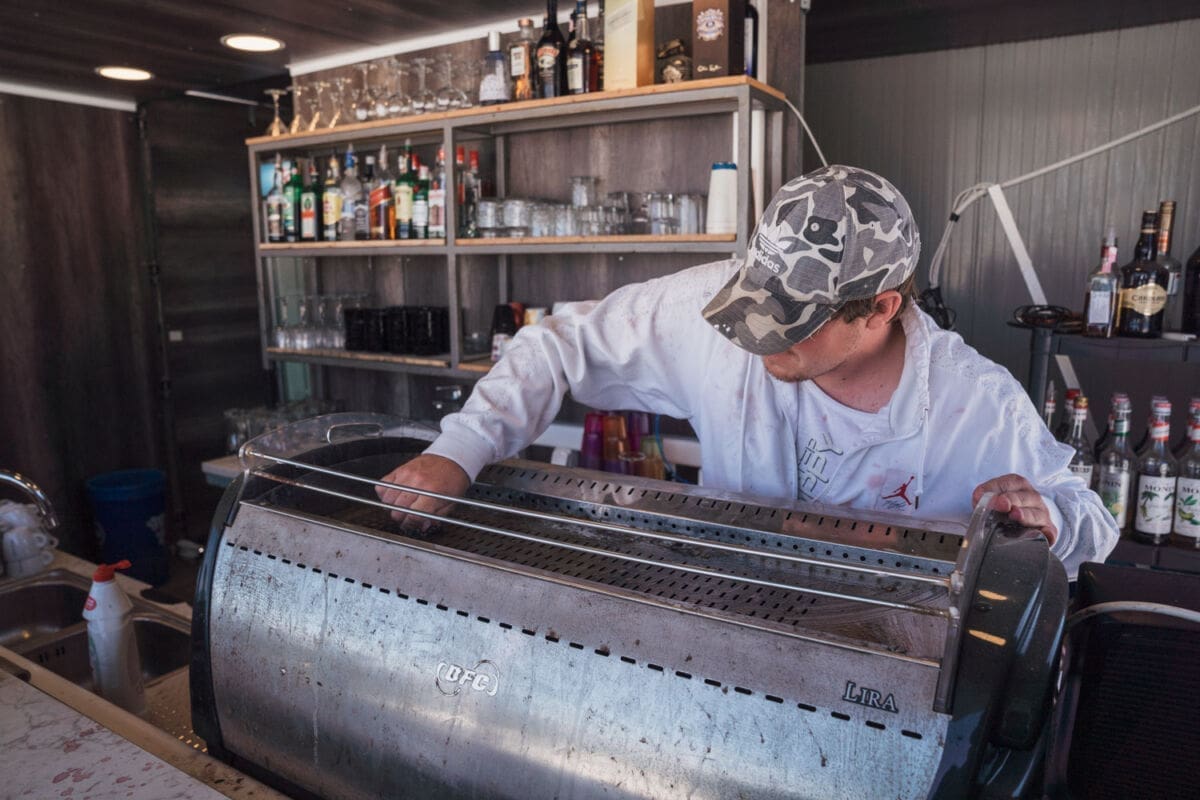 Zaposlenik koji poslužuje gosta na vanjskim prostorima samog objekta. Određuje se jedan zaposlenik koji poslužuje unaprijed točno određeni broj stolova kako bi se što više smanjilo miješanje zaposlenika i gostiju. Između naplaćivanja usluge i posluživanja pojedinih posjetitelja zaposlenik objekta mora dezinficirati ruke.