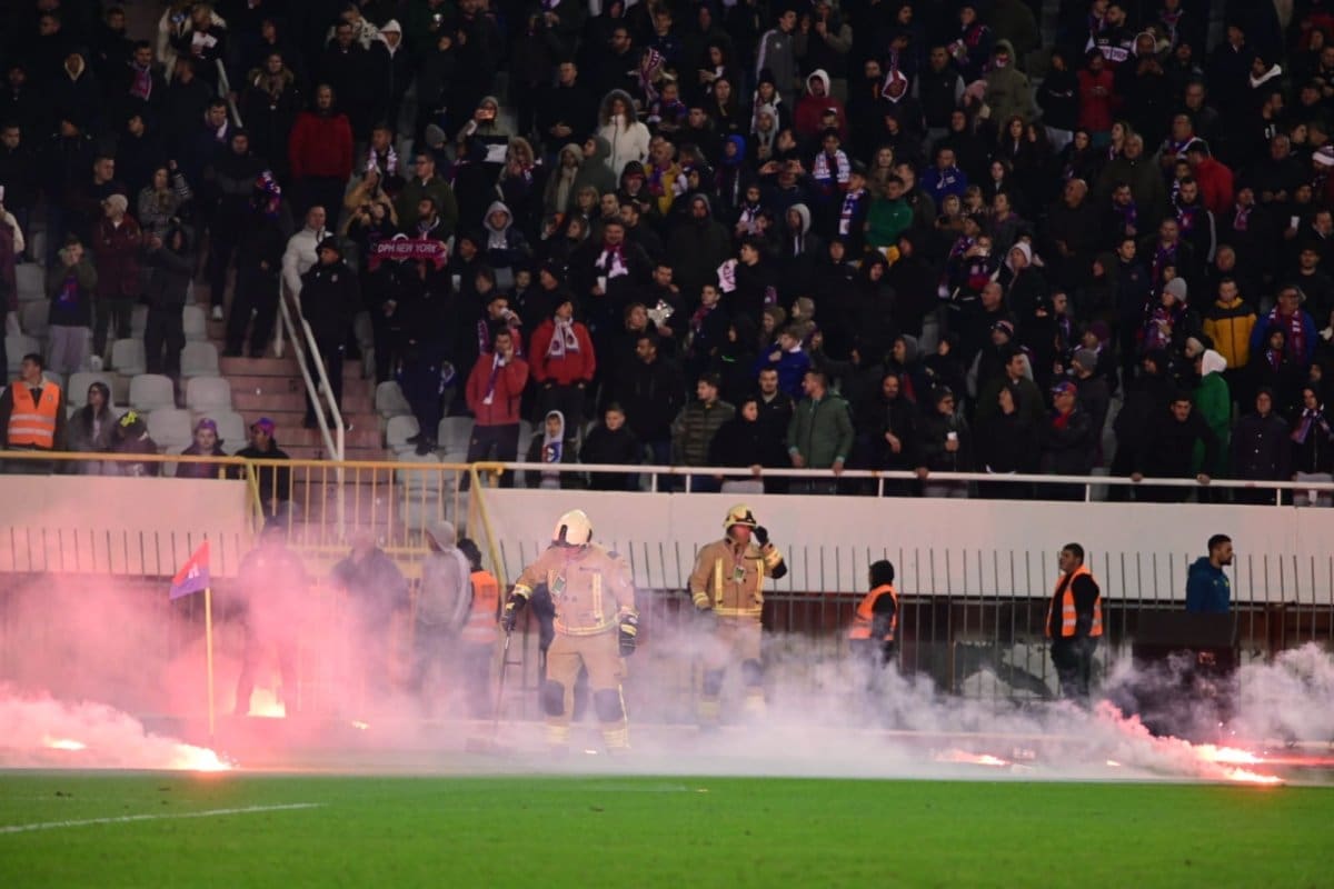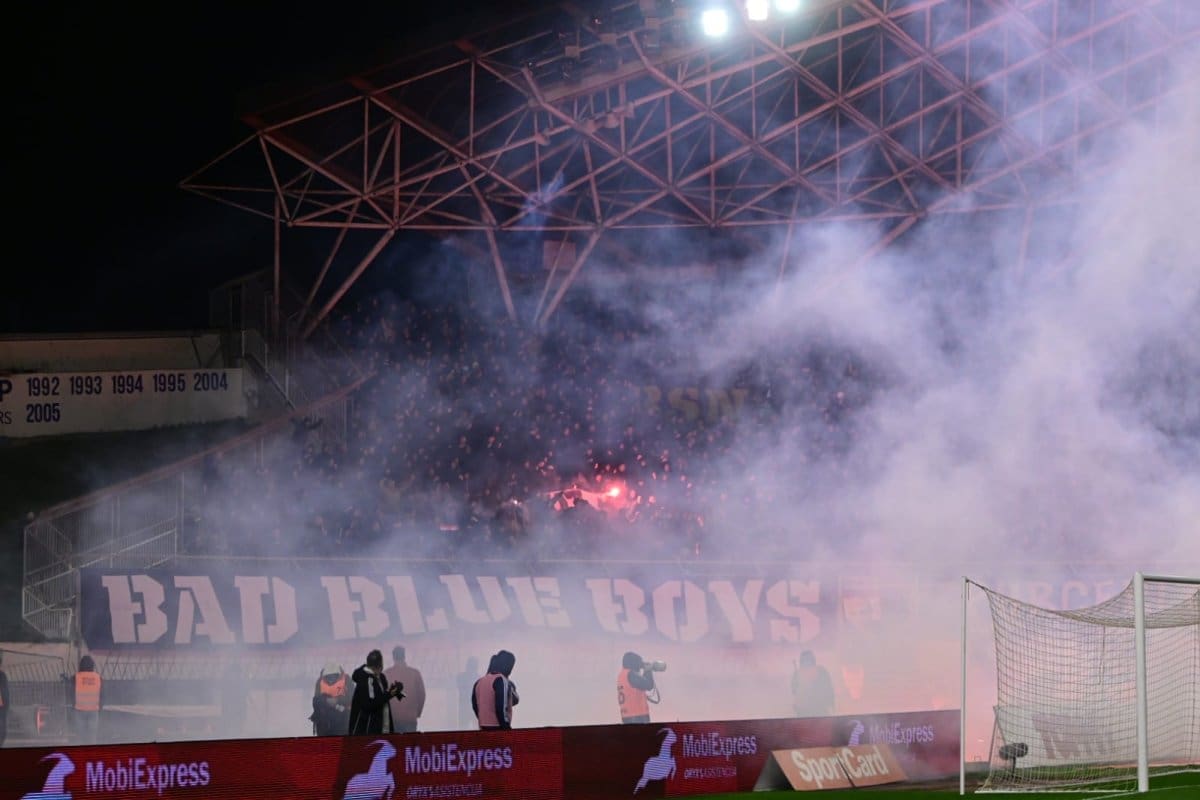 U 79. minuti Diallo je ostao ležati nakon sraza s Mbukuom, intervenirala je liječnička ekipa, a u međuvremenu su BBB gađali fotografe i teren, a jedna je baklja završila opet na Zapadu, među publikom.