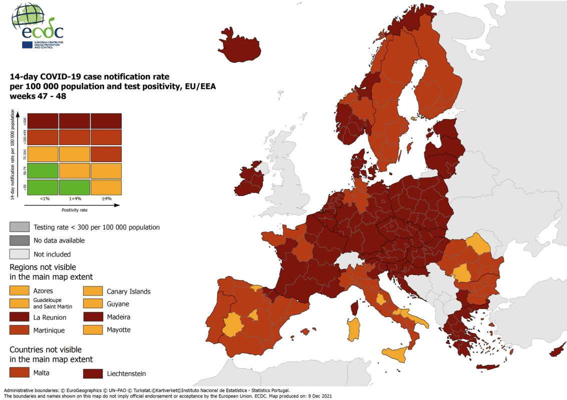 Europski centar za kontrolu bolesti danas je objavio novu korona-kartu Europe.