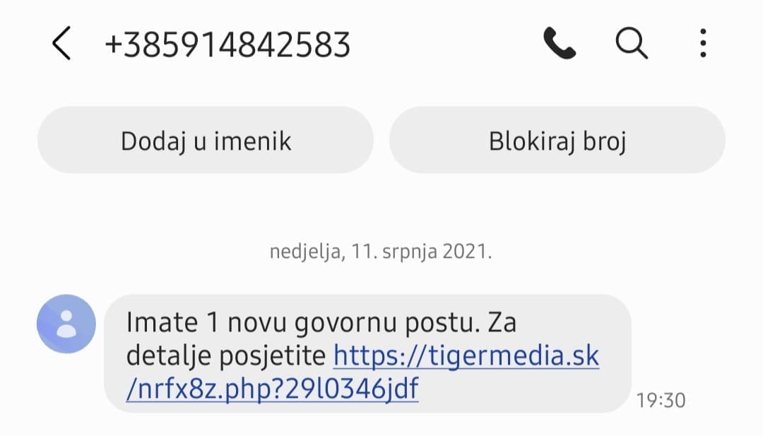I dalje se SMS-ovima šalju poruke u kojima stoji da imate govornu poštu i link na kojem se navodnu poštu može poslušati.
