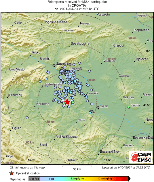Felt #earthquake (#potres) M2.1 strikes 27 km S of Zagreb - Centar (#Croatia) 4 min ago. Please report to: https://t.co/IAnrRTWPlP pic.twitter.com/XkzFxp7W2B