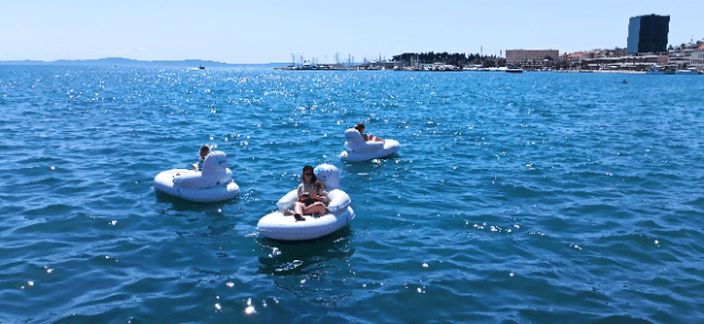 Gotovo je bizaran 'luftić' na strujni pogon (nakon golemih labuda ili kakvih već ne oblika, logičan je evolucijski slijed) IMATJET. Postiže brzinu od tri čvora, ima elektromotor snage 500 Watta, a prodavač posebno naglašava sigurnost za kupače u zonama gdje ovaj madrac 'plovi'. Nisu posebno naglasili, ali nama se čini važnim – 'luftić' na struju nije predviđen za bezbrižne odlaske do Brača ili Hvara s kakve plaže na makarskoj Rivijeri. Ipak, čini nam se da će u godinama pred nama samo rasti broj turista koje će usred ljeta spašavati mornarica ili Lučka kapetanija...