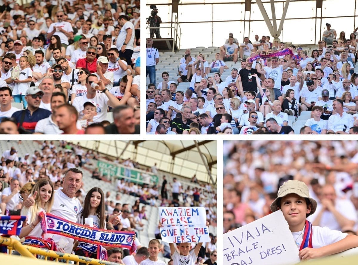 Poljudska ljepotica ispunjena je navijačima u bijelim majicama. I mlado i staro došlo je pozdraviti svoje Bile i čestitati im na odličnom kraju sezone i trofeju. A potrudili su se pripremiti i zanimljive transparente.