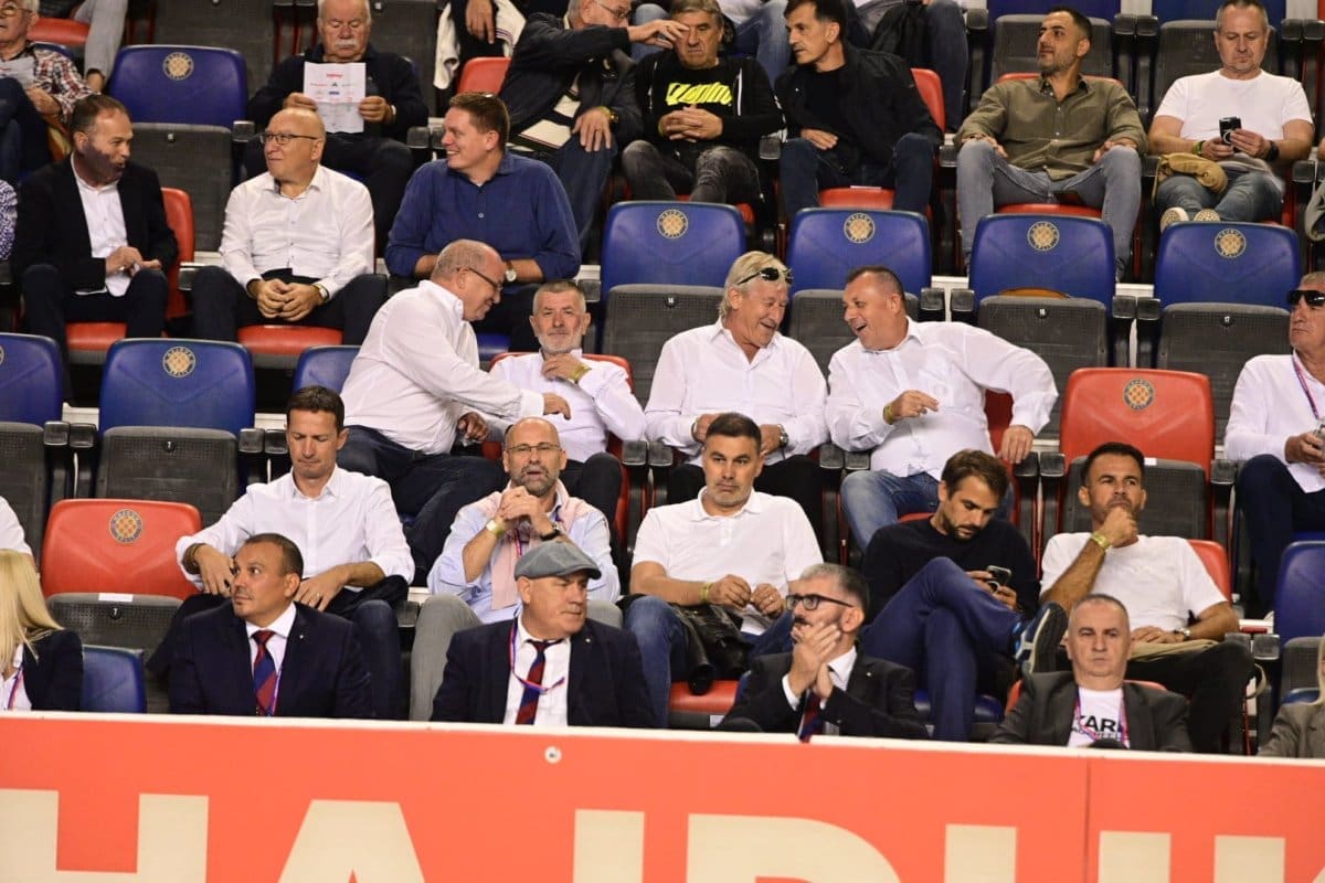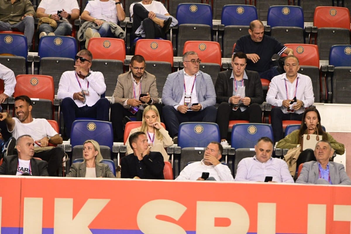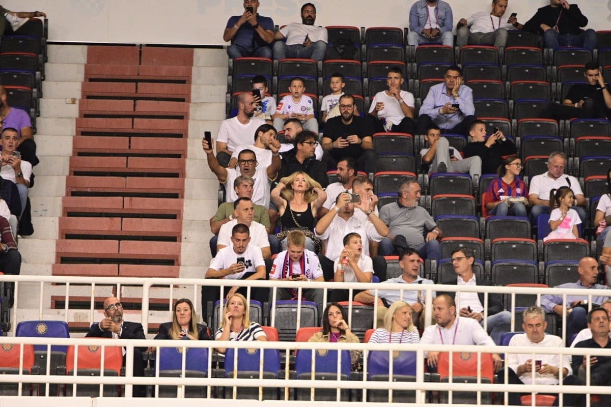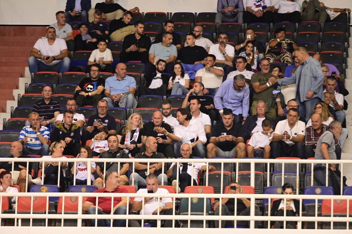 Utakmicu prate brojni navijači, a nisu je propustile ni supruge igrača Hajduka. Tako smo uspjeli uhvatiti Livajinu suprugu Iris, ali i Rakitićevu suprugu Raquel.