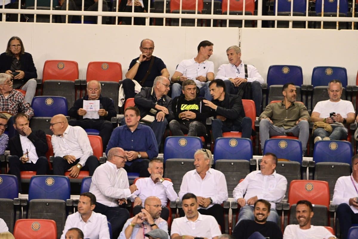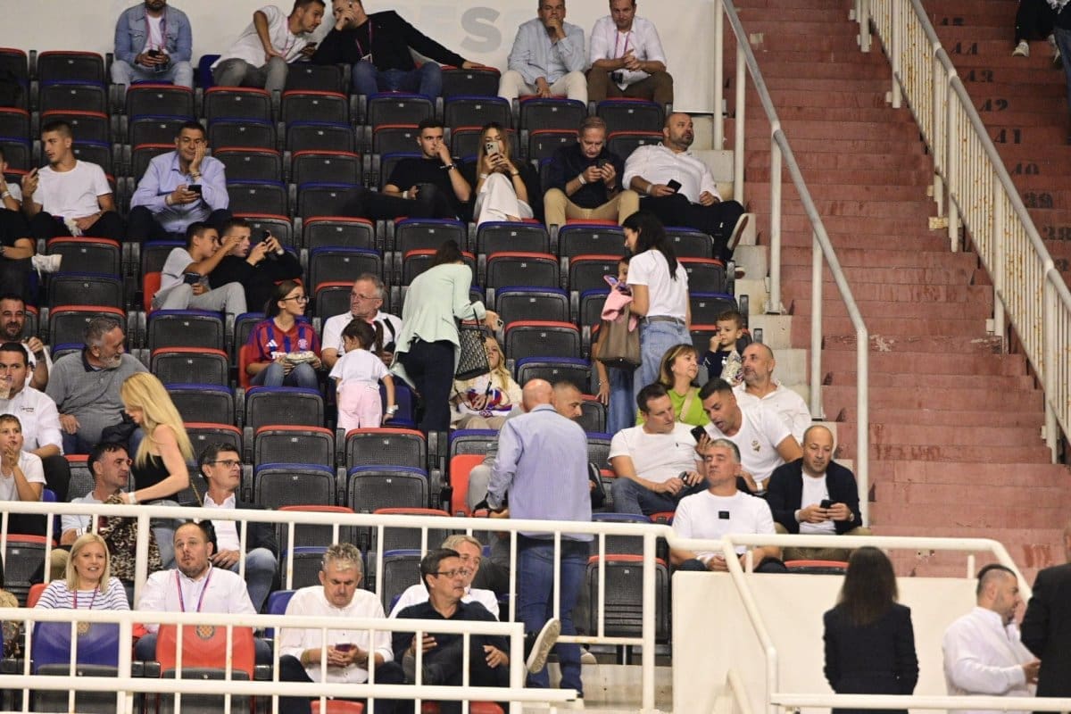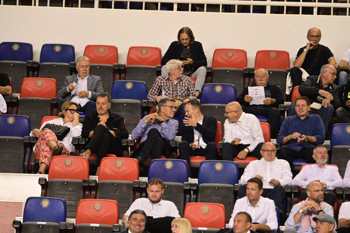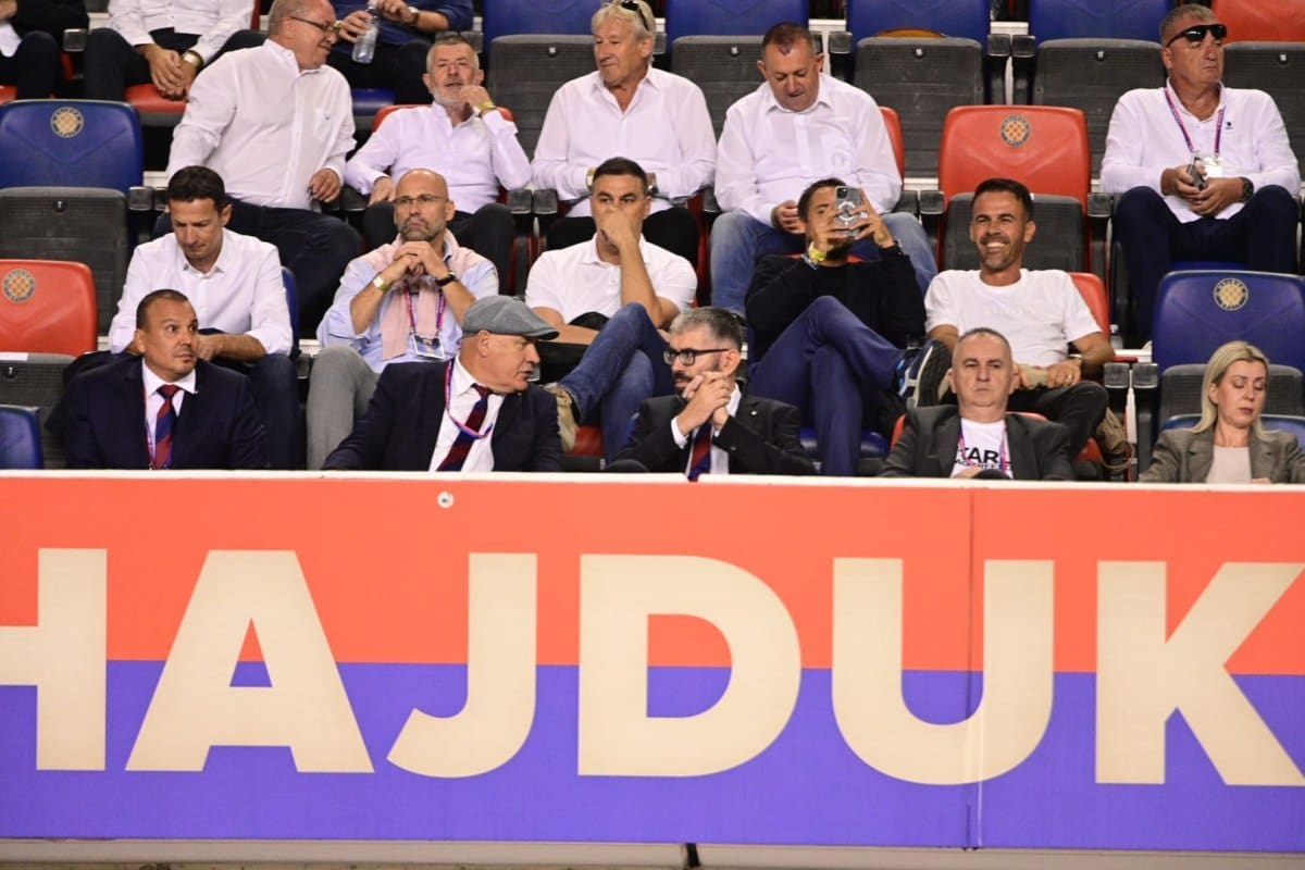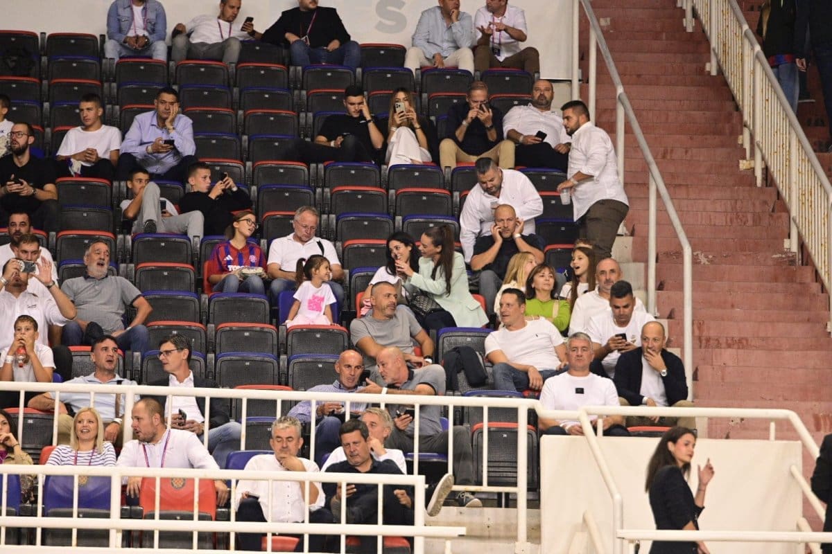 Utakmicu prate brojni navijači, a nisu je propustile ni supruge igrača Hajduka. Tako smo uspjeli uhvatiti Livajinu suprugu Iris, ali i Rakitićevu suprugu Raquel.