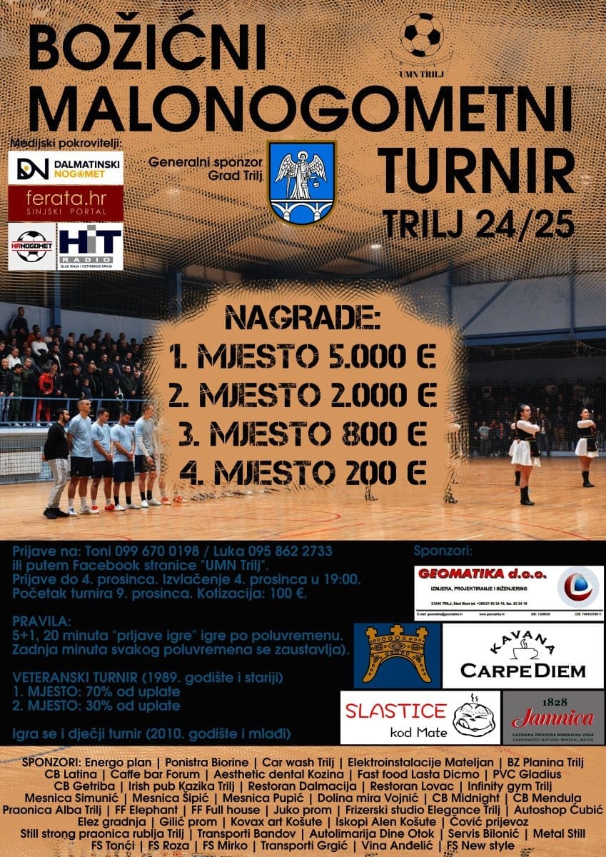 - Božićni malonogometni turnir u Trilju postao je sinonim za zabavu i sport u blagdansko vrijeme. Svake godine trudimo se unaprijediti kvalitetu turnira te privući što veći broj sudionika i gledatelja. Pozivamo sve zainteresirane ekipe da se prijave i pridruže nam u stvaranju nezaboravne sportske priče. Turnir ne bi bio moguć bez podrške brojnih sponzora i partnera koji svake godine doprinose uspješnoj organizaciji i na tome im ogromna hvala - izjavio je Luka Živaljić, predsjednik Udruge za mali nogomet Trilj.