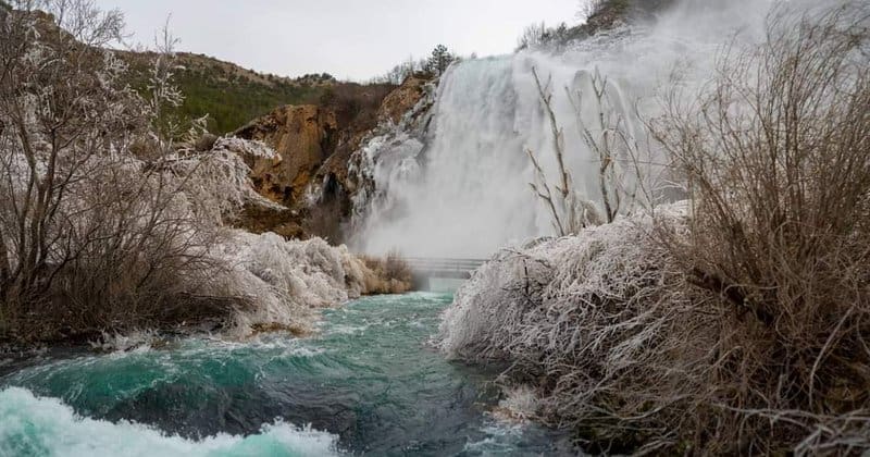 Zima je stisla, a jutros je u dijelu Zagore temperature zraka padla ispod ledenih -10 Celzijevih stupnjeva. Sinjal na Dinari je noćas mjerio -20 stupnjeva! U sjevernoj Dalmaciji lokalno je bilo pojave zaleđenih morskih plićaka i jezera, a osobito atraktivne prizore dočekali su svi posjetitelji slapa Krčić kod Knina.