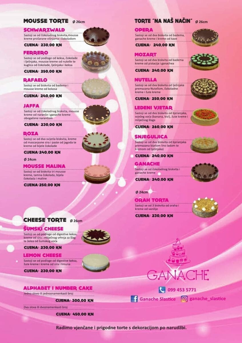 “Ono po čemu nas kupci prepoznaju je da je sve 100% domaće i ručno rađeno. Ne mutimo “kolače iz prašine”, već isključivo ručno pripremamo sve slastice od visoko kvalitetnih sastojaka (maslaca, vrhnja za šlag s preko 33% m.m. itd.) bez ikakvih aditiva i konzervansa”, poručuju iz Ganachea.