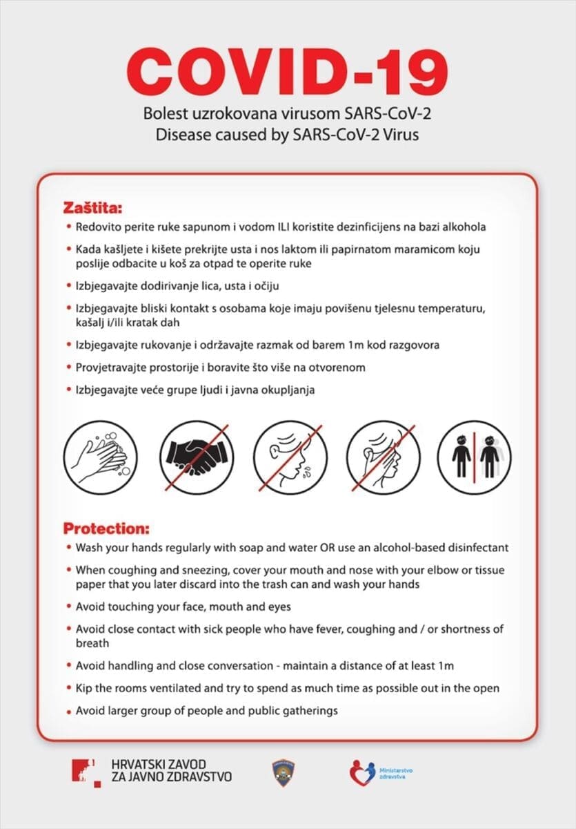 Molimo sve stanovnike da se pridržavaju navedenih smjernica kao i uputa Nacionalnog i Županijskog stožera civilne zaštite te da se pridržavaju propisanih higijenskih postupanja s ciljem suzbijanja širenja virusa.