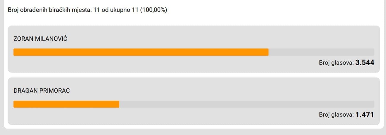 Nakon 100% obrađenih biračkih mjesta u drugom krugu predsjedničkih izbora, u Makarskoj je uvjerljivo slavio SDP-ov kandidat Zoran Milanović.