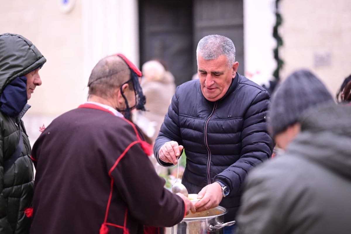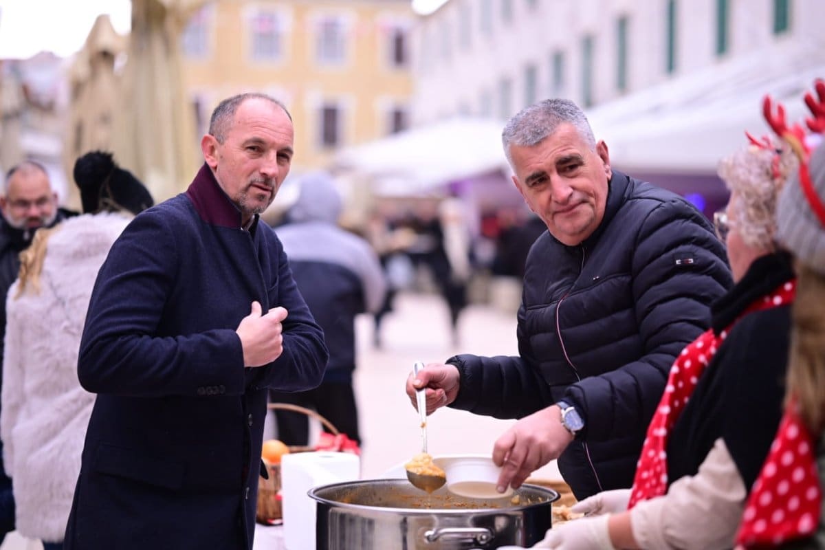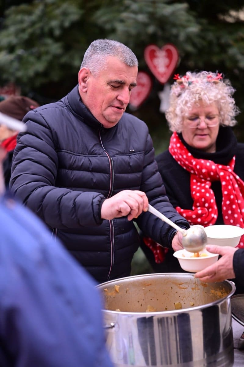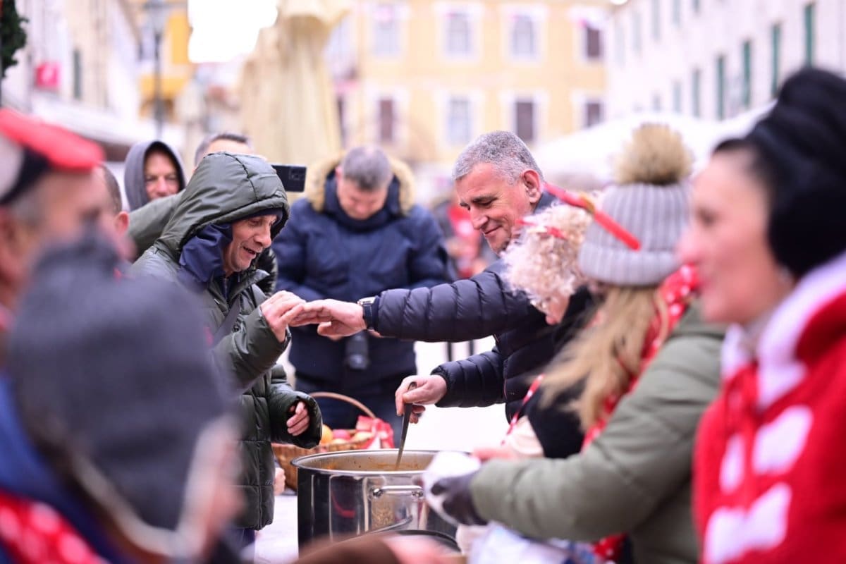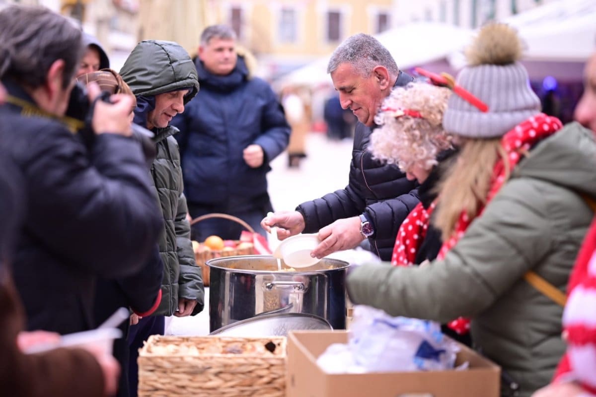 Centar Sinja danas je bio pun, usprkos buri koja nas je ohladila posljednja dva dana. Badnji je dan, a tradicija je da se na Badnjak jede bakalar. Tako su i Sinjani imali priliku probati bakalar, a servirao im ga je, među ostalima, i gradonačelnik Miro Bulj.