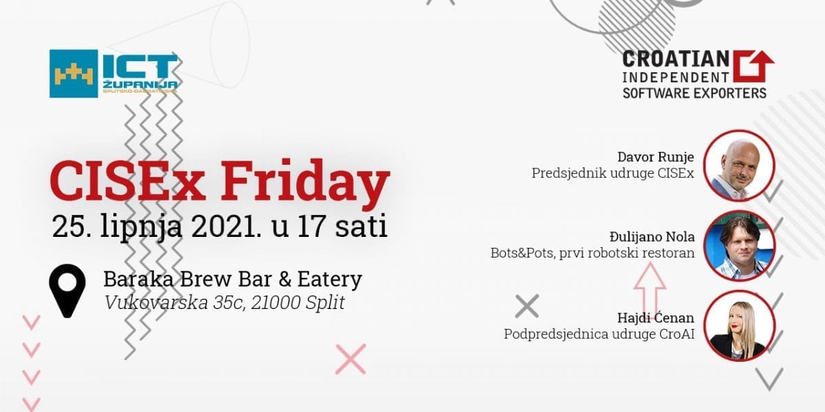 CISEx Friday u Splitu, koji će se održati u petak 25. lipnja 2021. u 17 sati na lokaciji Baraka, Vukovarska 35c, 21000 Split.
