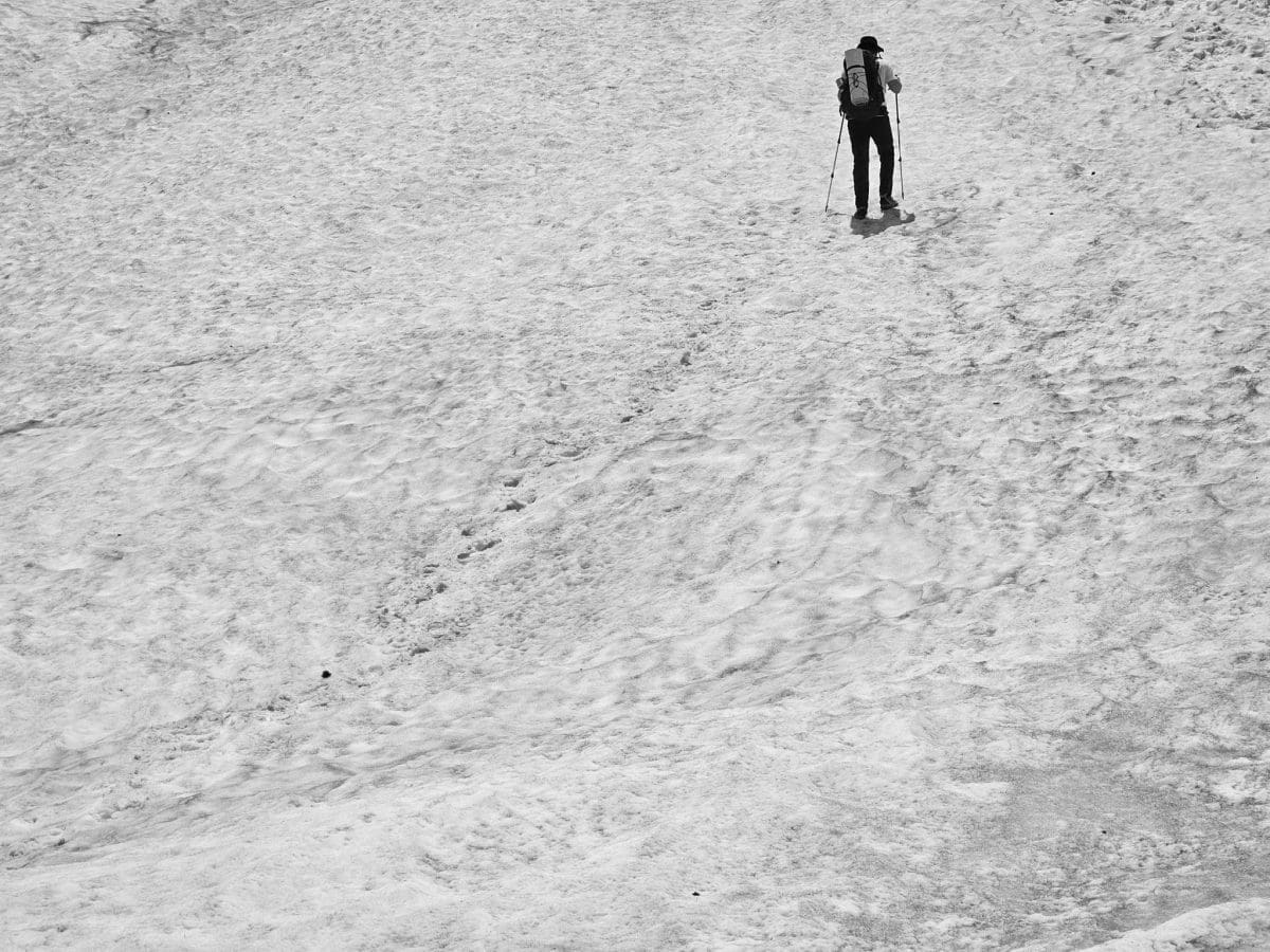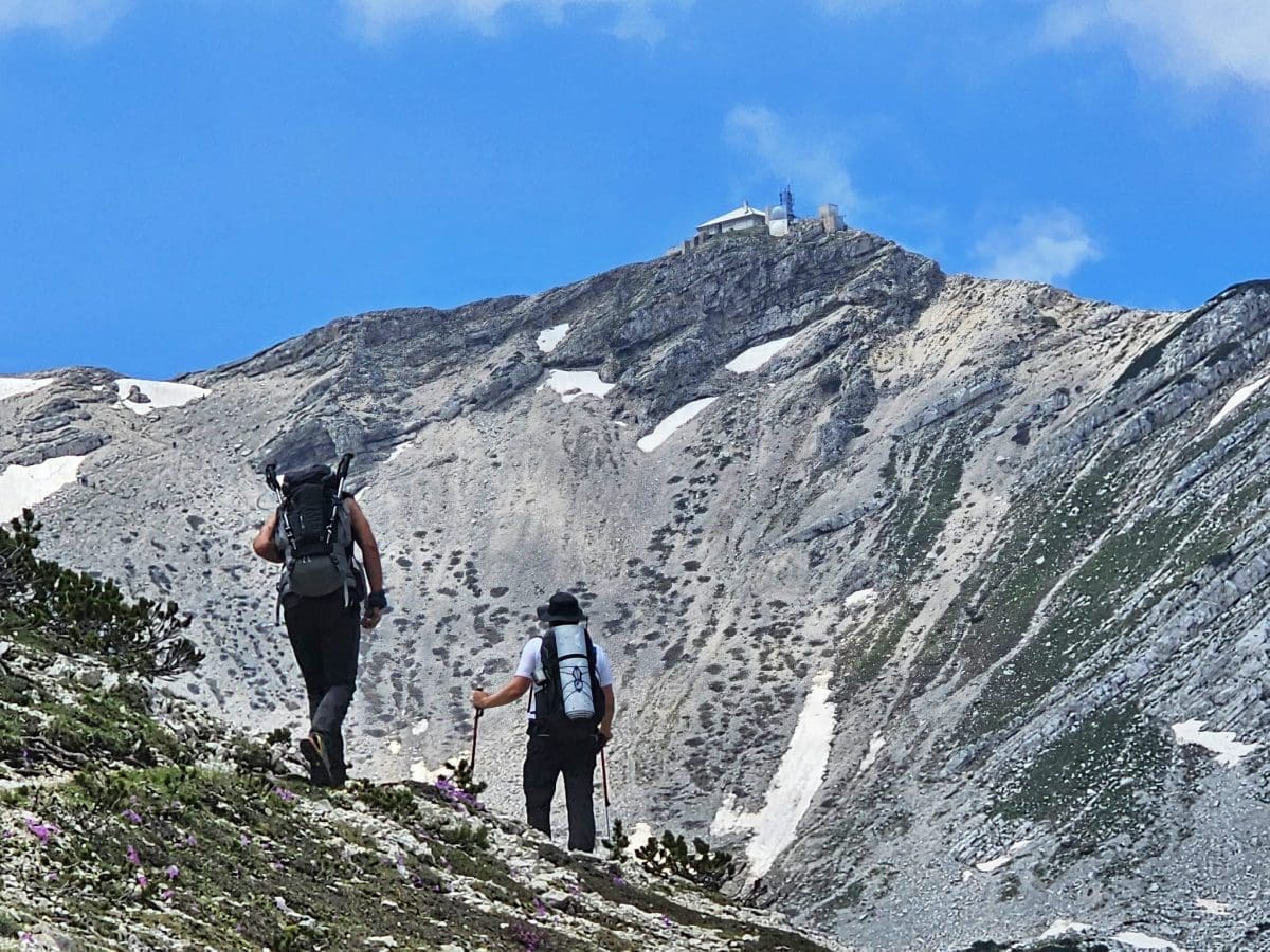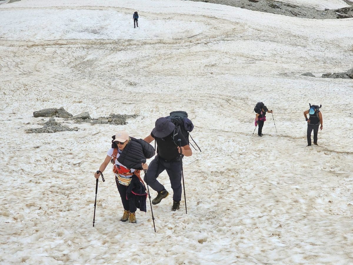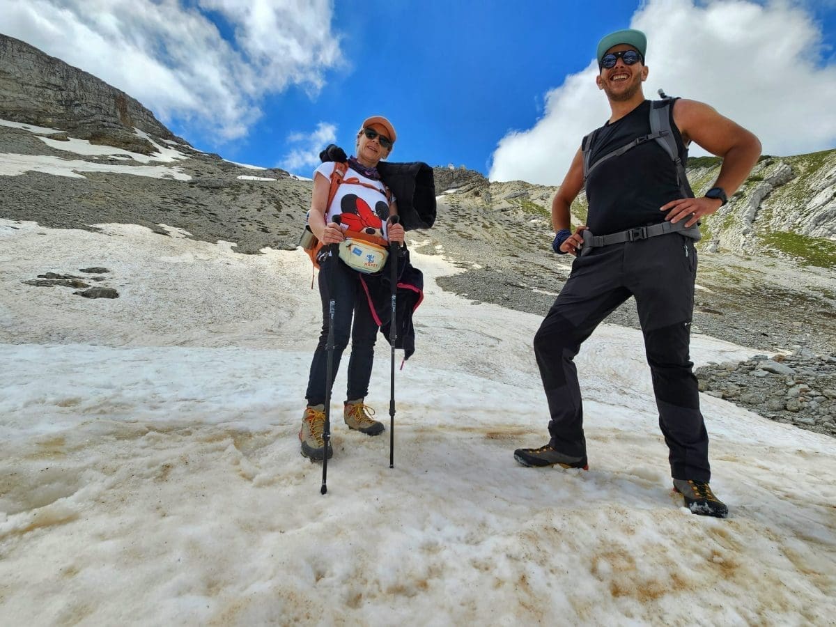 Vremenske prilike bile su gotovo idealne za planinariti jer je bilo pretežno oblačno i suho, veći dio puta uz slab vjetar. Staza je dobro označena i prolazi i kroz šumu i kroz sipare. Na oko 2000 metara kreću prvi tragovi snijega i leda na tlu. Ipak, radi se o ostacima zimske sezone koji vjerojatno neće dočekati kraj srpnja. Upravo se na tom području osjeti nagli pad temperature što je dodatno osnažio hladan sjeverac koji je osjet hladnoće činio izraženim.