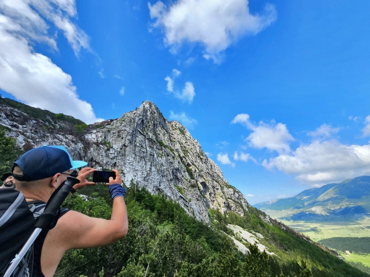 Na vrhu je sjeverac imao povremeno vrlo jake udare, a uz temperaturu zraka od 8°C osjet hladnoće bio je jedva iznad nule. S vrha planine pruža se veličanstven pogled na brojne vrhove Bosne i Hercegovine, ali i na vrhove dalmatinskih planina poput Dinare, Kamešnice ili Biokova. Na samom Pločnom nalazi se zastarjeli, ali funkcionalni vojni objekt. Moramo pohvaliti dežurnog vojnika koji je sve posjetitelje vrha pitao treba li im išta. Slijedi silazak koji je dijelom bio drugom stazom, tako da se izlet pretvorio u kružni.