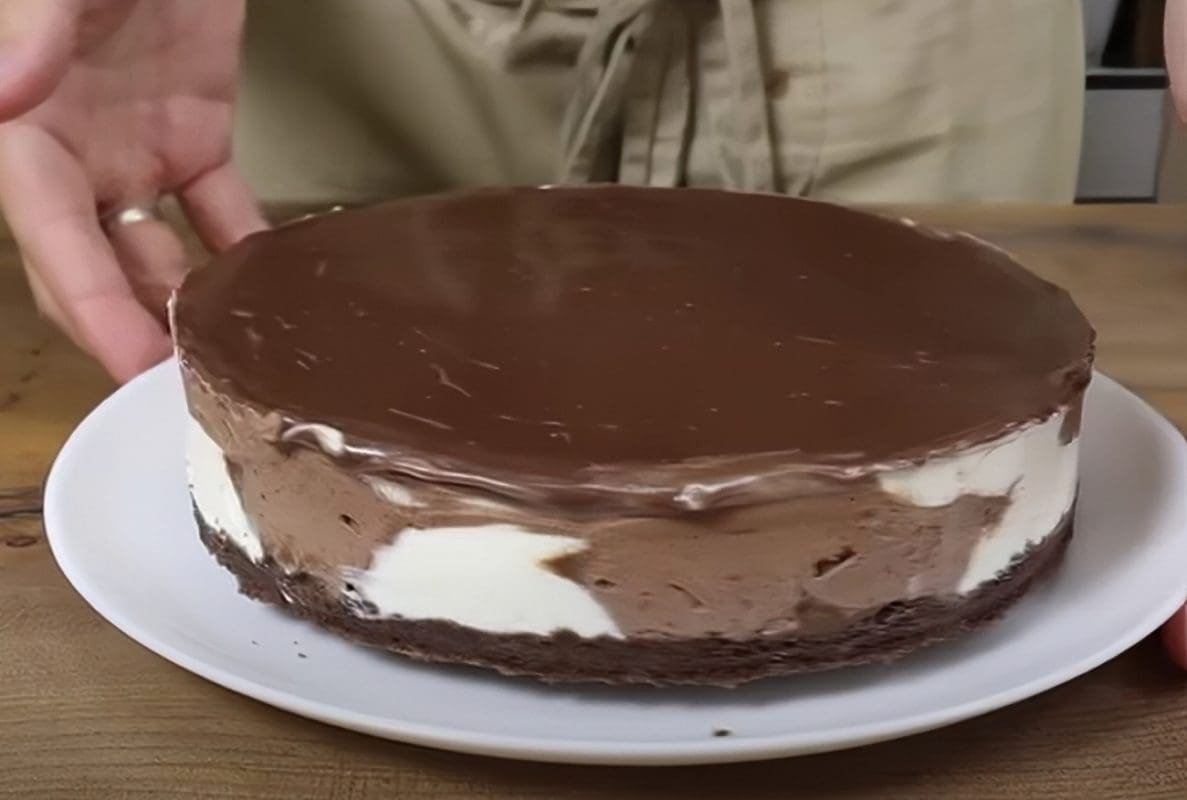 Na kraju stavljajte obje kreme na podlogu kako je pokazano niže u videu. Površinu torte zagladite pa premažite otopljenom čokoladom. Stavite je u zamrzivač na nekoliko sati, a izvadite 20 minuta prije posluživanja, prenosi Atma.