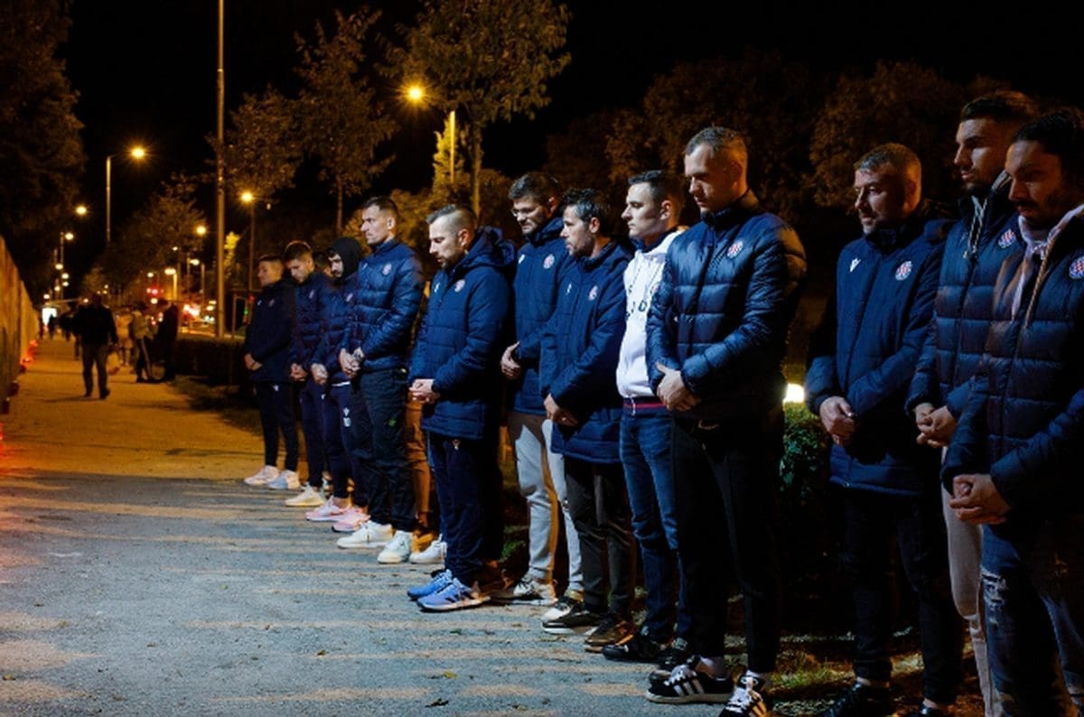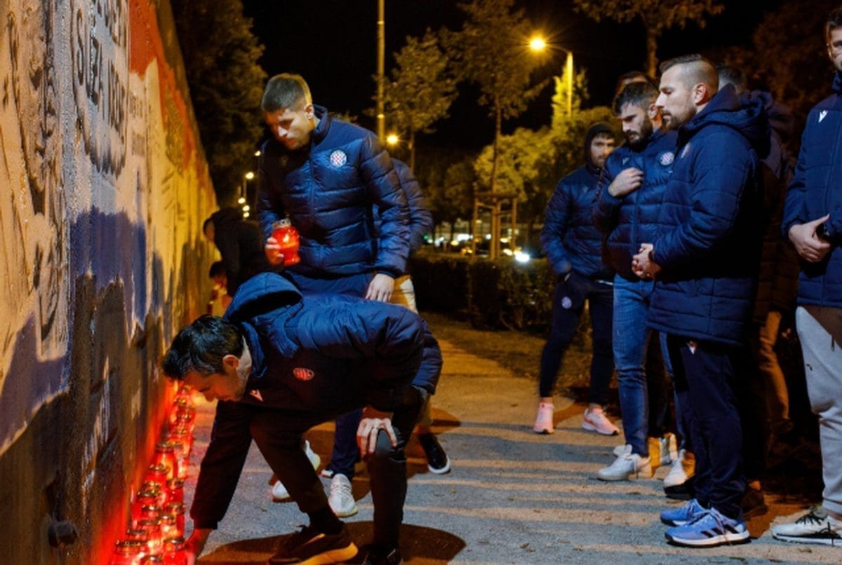 Predstavnici igrača prve momčadi predvođeni trenerom Mislavom Karoglanom i stručnim stožerom u petak navečer su se poklonili žrtvama Vukovara i Škabrnje, simbolično zapalivši svijeće u Vukovarskoj ulici u Splitu.