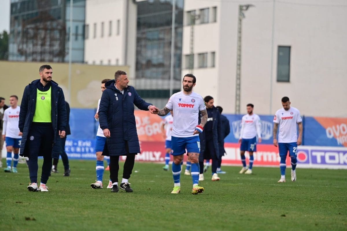 To je novi kiks Hajduka, a 'Bijeli' s nestrpljenjem iščekuju sutrašnju utakmicu Dinama i Rijeke. Nakon utakmice igrači Hajduka otišli su do navijača te su ih pozdravili.