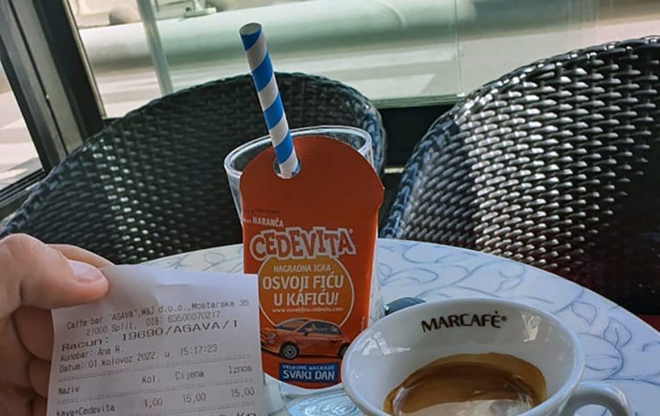 Tako je jedan Splićanin u splitskoj grupi Split i oko Splita pohvalio Caffe bar Agava na Brdima gdje je cijena kave i Cedevite 15 kuna.