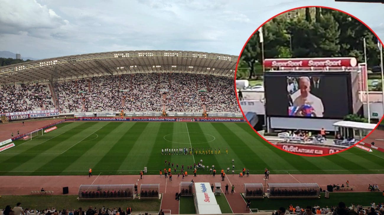 Nakon što su igrači nakon zagrijavanja otišli u svlačionicu, na Poljudu je svirala pjesma „Ima jedna duga cesta“, a na semaforu je bio lik pape Franje s Hajdukovim šalom, što je publika je ispratila pljeskom.