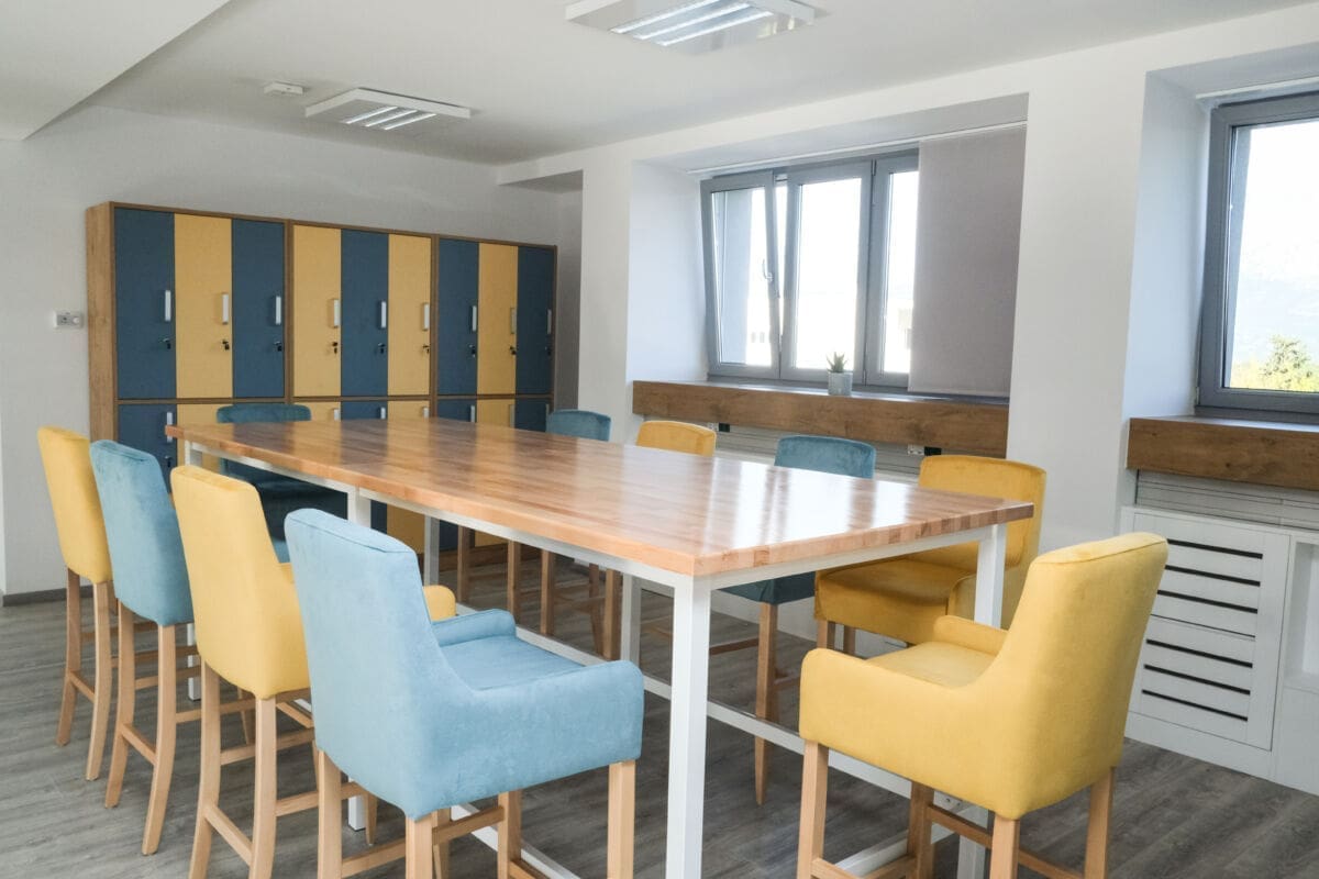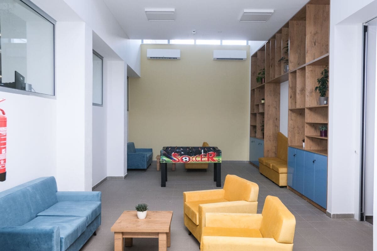 Ideja je bila stvoriti neformalno okruženje za rad, druženje i razmjenu ideja. Svaki kat ima svoju kuhinju i lounge prostor s play stationom, informatičkom opremom, televizijom, ležaljkama i kaučima. Na prvom katu se nalazi i mala teretana s nekoliko sprava i prostorom za tuširanje. Tu zapravo možete boraviti cijeloga dana, a da ne poželite izići.