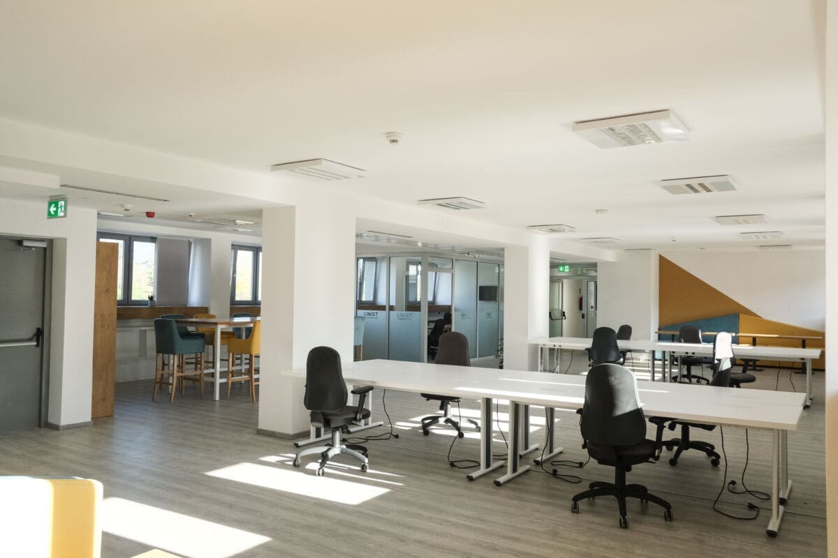 Na prva dva kata smješteno je 26 potpuno opremljenih ureda kapaciteta do 3 radna mjesta. Svi su klimatizirani te pokriveni brzim internetom i telefonskom vezom. Modularan dizajn omogućava širenje ureda zahvaljujući pomicanju montažnih zidova, pa će se lako moći smjestiti i devet ljudi, pa čak i više.