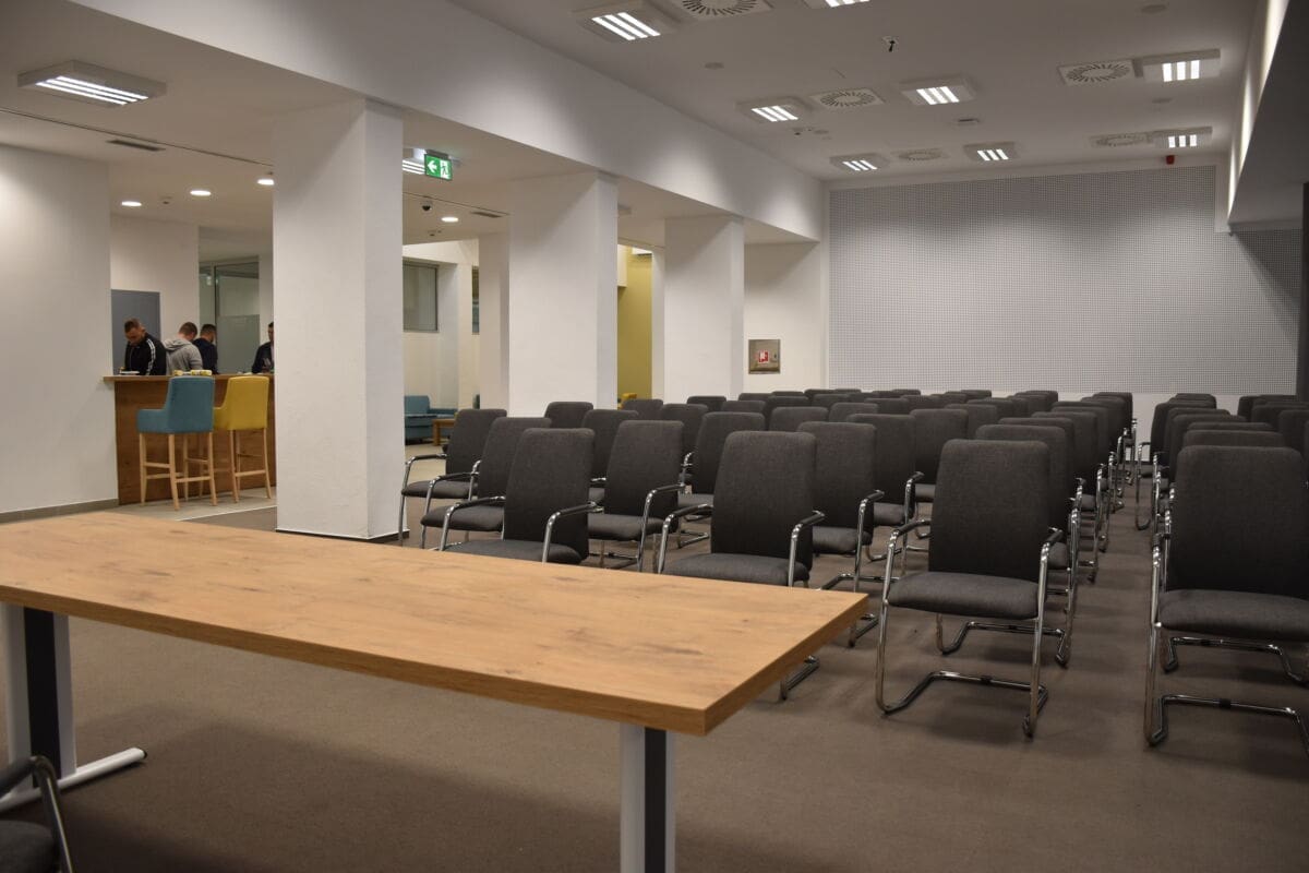 Velika konferencijska dvorana kapaciteta preko 100 mjesta namijenjena je za veće događaje. Ima i pretprostor sa šankom za neformalna druženja, a direktni ulaz sa ceste osigurava joj vrlo dobru pristupačnost. Tu će se organizirati i odvijati razni kongresi, poduzetnički kafići i meetupi.