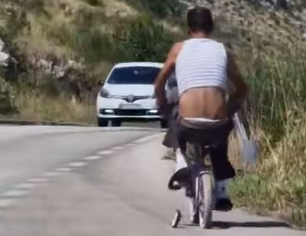 Vozači na neobjavljenoj lokaciji svjedočili su nesvakidašnjem prizoru. Naime, jedan muškarac se vozio maleni bicikl uz pomagalo - jedan pomoćni kotač.