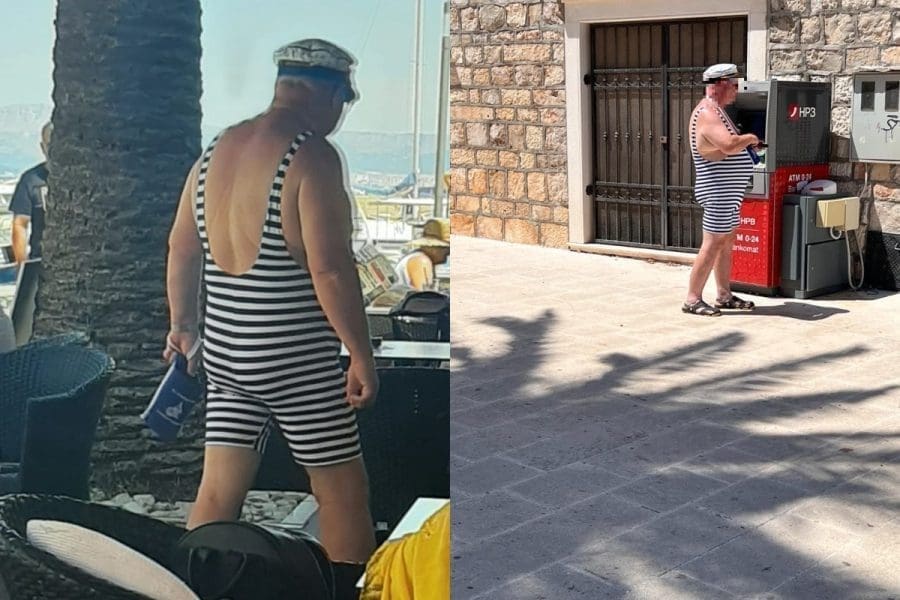 Podijeli Facebook Twitter Telegram WhatsApp E-mail adresa Zanimljiv modni izričaj snimio je danas naš čitatelj na sutivanskoj Rivi. Muškarac starije dobi se u mornarskom štihu prošetao centrom Splita te je plijenio pažnje prisutnih.Tekst se nastavlja nakon oglasa Jasno je i zašto... Moja reakcija na članak je... Ljubav 7 Haha 22 Nice 3 What? 2 Laž 0 Sad 11 Mad 5 Facebook Twitter Whatsapp Telegram