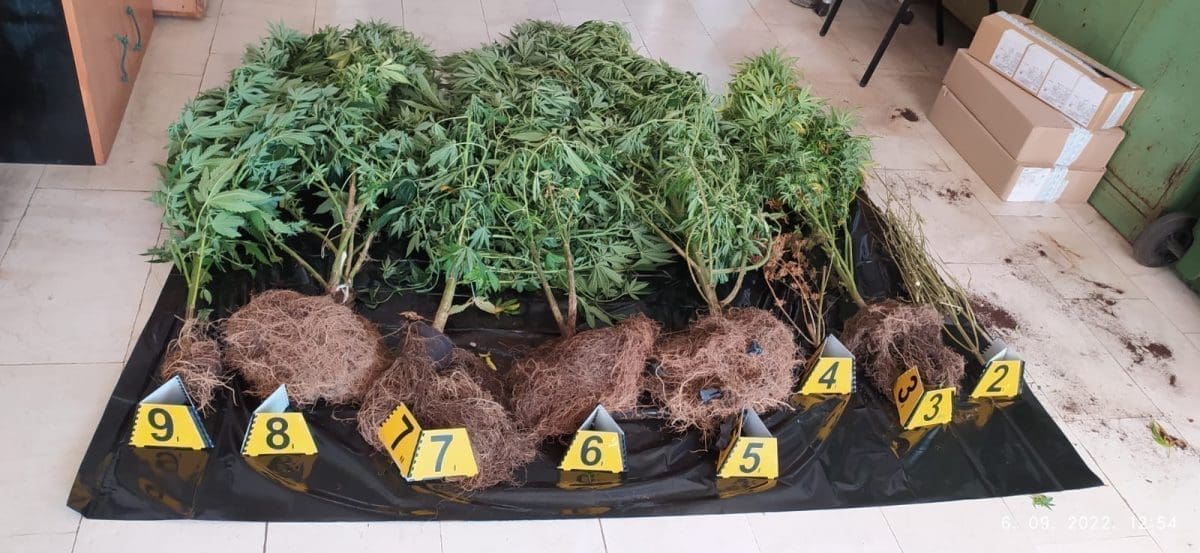 Pretragom je pronađeno 6 zasađenih stabljika marihuane visine 1,5 do 2 metra i 52,3 grama sasušene marihuane.