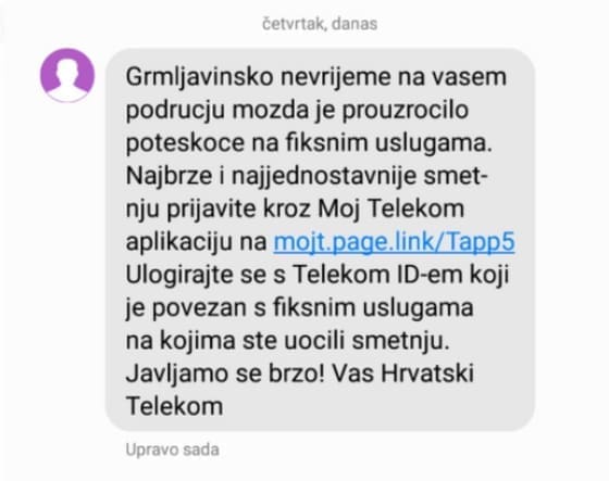 Građanima se putem SMS-a obratio i Hrvatski telekom.