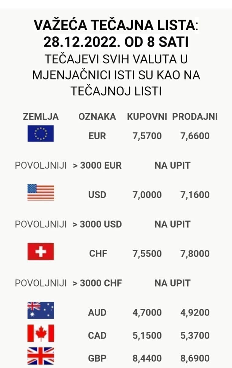 Moramo samo naglasiti kako cijela stvar puno bolje, odnosno isplativije funkcionira u – Zagrebu! Relativno kratkim pregledom stanja u tamošnjim mjenjačnicama postaje jasno da su tečajevi za ovakav vid transakcije puno povoljniji – za istih desetak tisuća eura da se zaraditi 500-700 kuna – iako i dalje to nije neko bogatstvo.