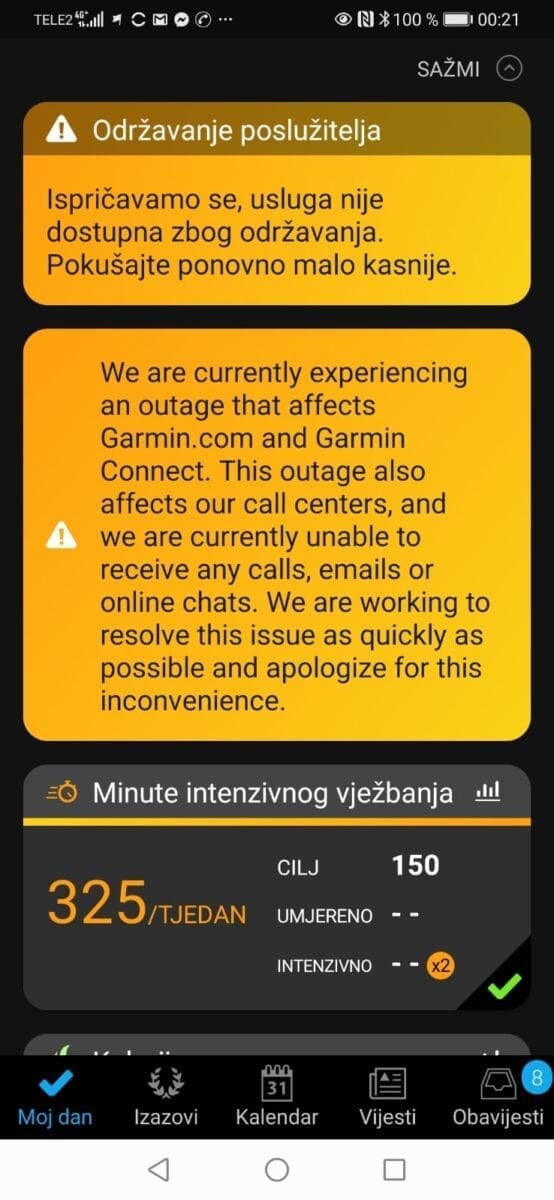 Dijelovi Garminove web stranice također su bili nedostupni.