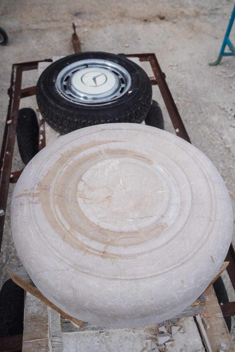 „Trenutno radimo desnu stranu Mercedesa, prednju i zadnju. U tijeku je izrada svih 12 dijelova Mercedesa. On će ići iz 12 dijelova kako bi spomenik bio fleksibilan, da ne bi pukao, ispukao. On će imati svoja milimetarska kretanja koja ćemo mi predvidjeti tehnološkim betonom i jednom plastikom unutra koja može trajati milijun godina. Provjerit će se ta milimetarska preciznost ovdje prije nego dijelovi odu gori na postavljanje. Kada odu gori na montažu, zadnjih misec dana će se raditi najfinije stvari isprid vih ljudi.