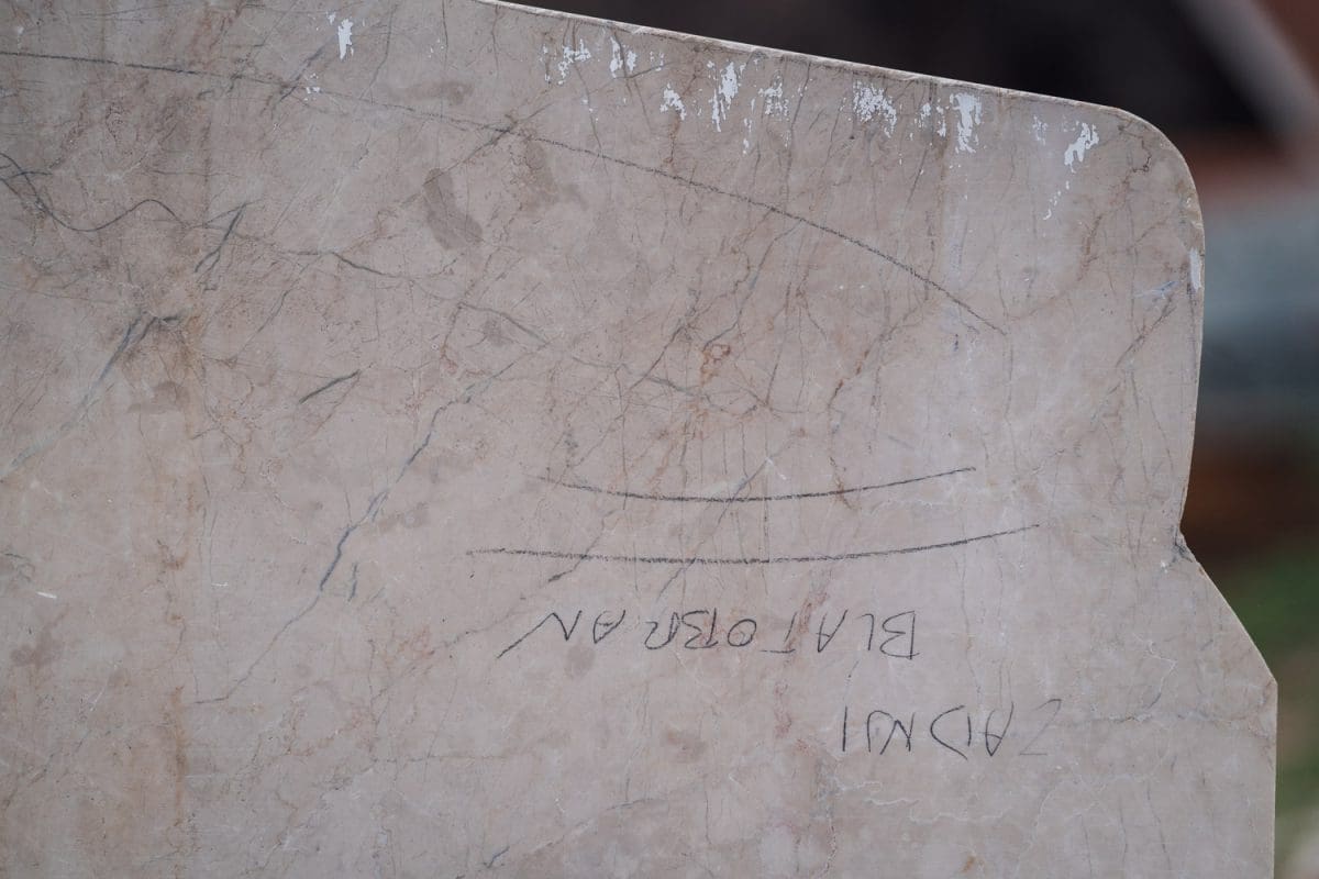 „Ovo je tvrdi imotski kamen, tvrd je ka i imotski čovik i njegova opstojnost ovoj grudi. Ovo je izričito naš vapnenac koji će odlit ovom vrimenu, suncu, vrućini, kiši. Isto je spreman ka i mi - da to bude vječno, da to bude jedna ljubav pokazana prema čovjeku, a i prema Mercedesu, jednom klasičnom automobilu koji će trajat i najboljem automobilu koji Imoćani i najviše cijene. Kamen temeljac blagoslovio nam je i položio don Ivan Turić, počasni predsjednik Časnog suda Oldtimer kluba Imotski i vlasnik old timera. Naravno Mercedesa“, pojašnjavam nam Nota i smije se.