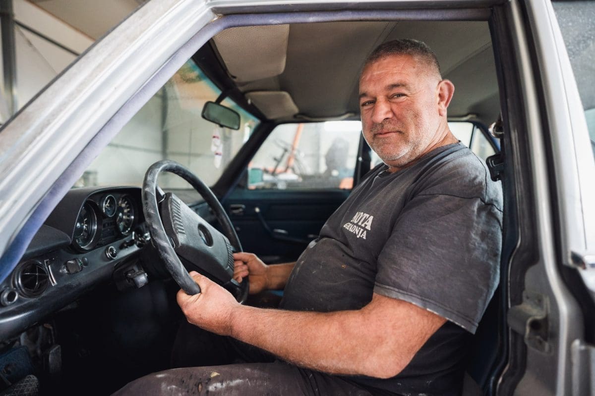 „52 godine broji Mercedes po kojem se radi spomenik. 1972. godine se on rodija. Moj ćaća ga je dotra 1975. godine i u ovome se začeja moj sin. U ovom Mercedesu!“, ponosno nam govori Nota.