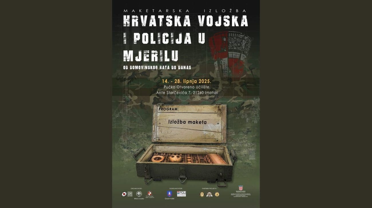 U subotu 14. lipnja 2025. u 19:00 sati bit će otvorenje maketarske izložbe "Hrvatska vojska i policija u mjerilu – od Domovinskog rata do danas" na lokaciji Pučkog Otvoreno Učilišta, Ante Starčevića 7, u Imotskom. Izložbu možete posjetiti do 28. lipnja 2025. godine.