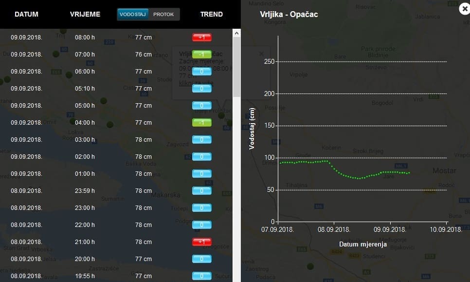 Prema službenim podacima Hrvatskih voda, odnosno dvije mjerne postaje na Vrljici, situacija je tijekom nedjelje daleko od zadovoljavajuće.