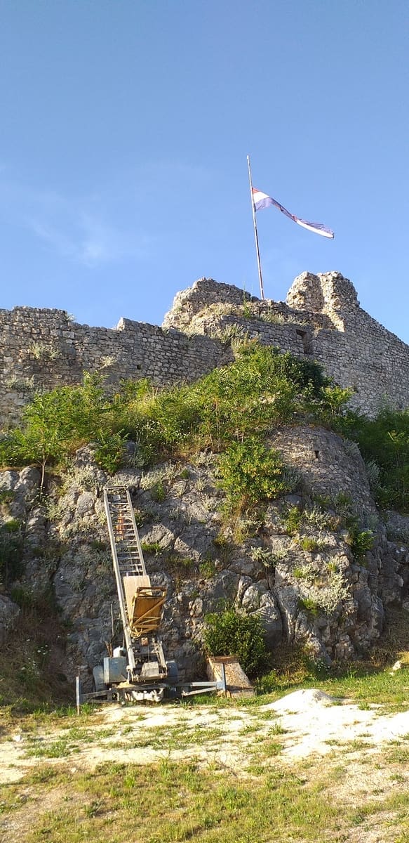 Dizalica, hrpe pijeska ne priliče izgledu lijepe utvrde,baš kao i hrvatska trobojnica koja se uslijed vjetra spustila na pola jarbola.Sve ovo može se ispraviti u sat vremena,vele na Radio Imotskom. Slažemo se!
