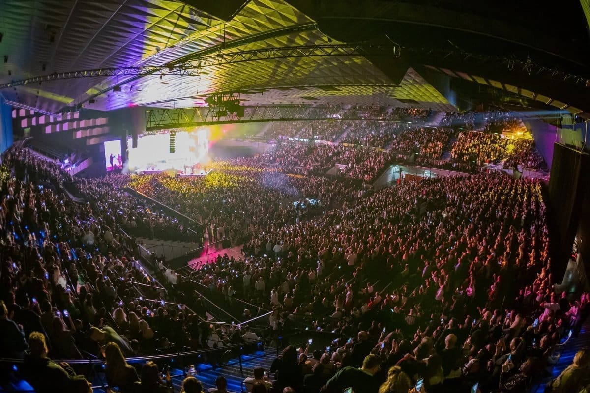 Njegov show na aktualnoj turneji „Mi“ nudi neponovljivo iskustvo i publici pruža fantastičnu energiju što je bilo jasno već od prvih taktova pjesme „Da šutiš“ u osvježenom aranžmanu nakon koje su se tijekom dvoipolsatnog koncerta nizali dobro poznati evergreeni i bezvremenski hitovi, a u nekoliko navrata tijekom nastupa njegov performans nagrađen je gromoglasnim i neprekidnim ovacijama. Čitava produkcija u rangu najviših svjetskih standarda, praćena impozantnim svjetlosnim i specijalnim efektima, uz izrazitu scensku energiju ovog karizmatičnog umjetnika, upisala je bečki koncert Dine Merlina zlatnim slovima u povijest kako ove slavne arene, tako i njegove karijere.