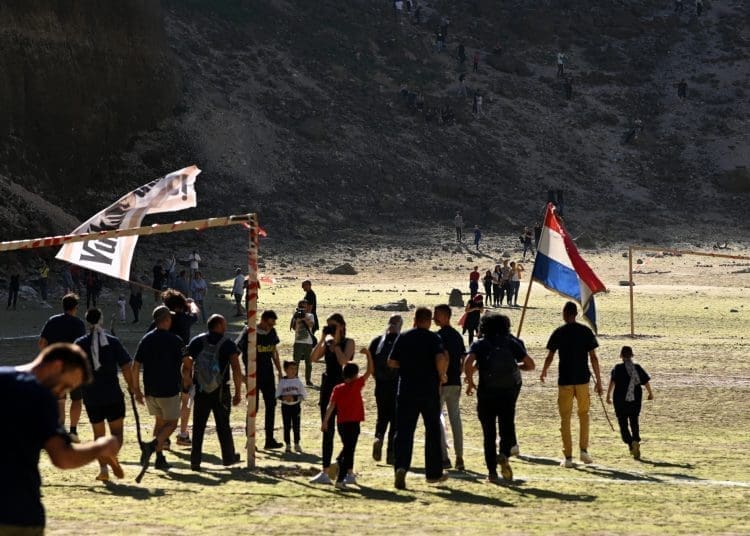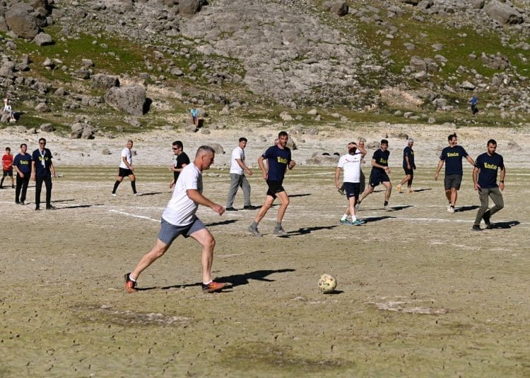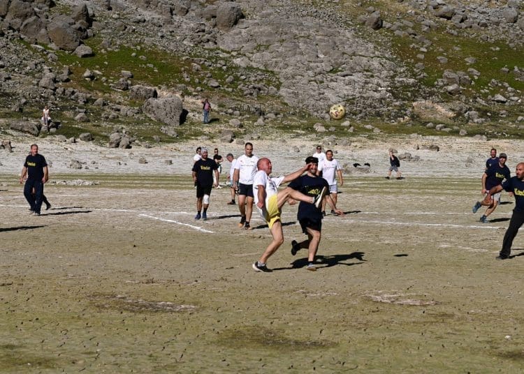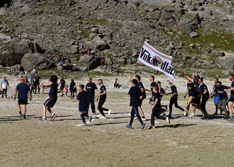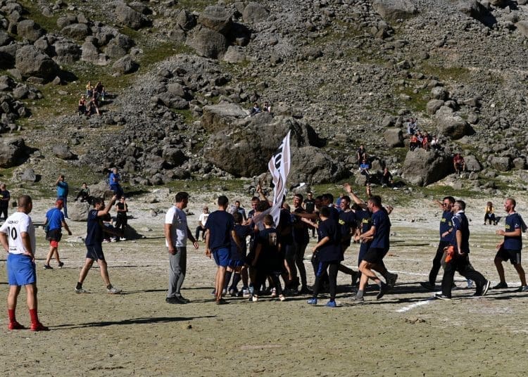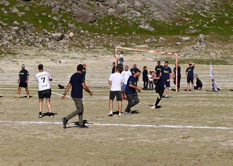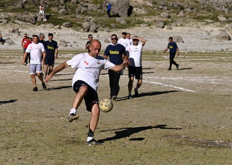 Rijeke ljudi slile su se danas u Modro jezero kako bi svjedočili nogometnom spektaklu na dnu presušenog Modrog jezera.