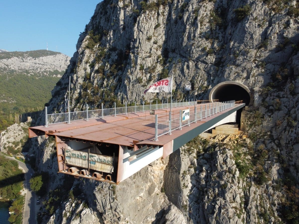 Iznad grada Omiša, poviše kanjona rijeke Cetine, u tijeku je izgradnja mosta koji je dio omiške zaobilaznice. Podsjetimo kako je riječ o projektu vrijednom 180 milijuna kuna, a do proljeća sljedeće godine bit će završena ta dionica duga 3,5 kilometra. U ovome trenutku završena je proizvodnja svih elemenata mosta u pogonima MAEG-a u Italiji. U tijeku je montaža elemenata splitske strane mosta, a u petak, 14.listopada bilo je prvo potiskivanje s ove strane. Predviđeno spajanje mosta je u siječnju 2023.