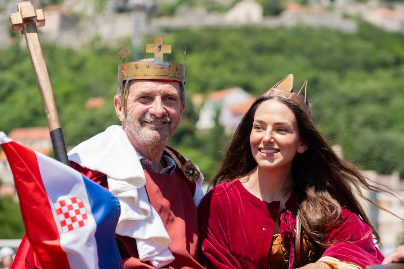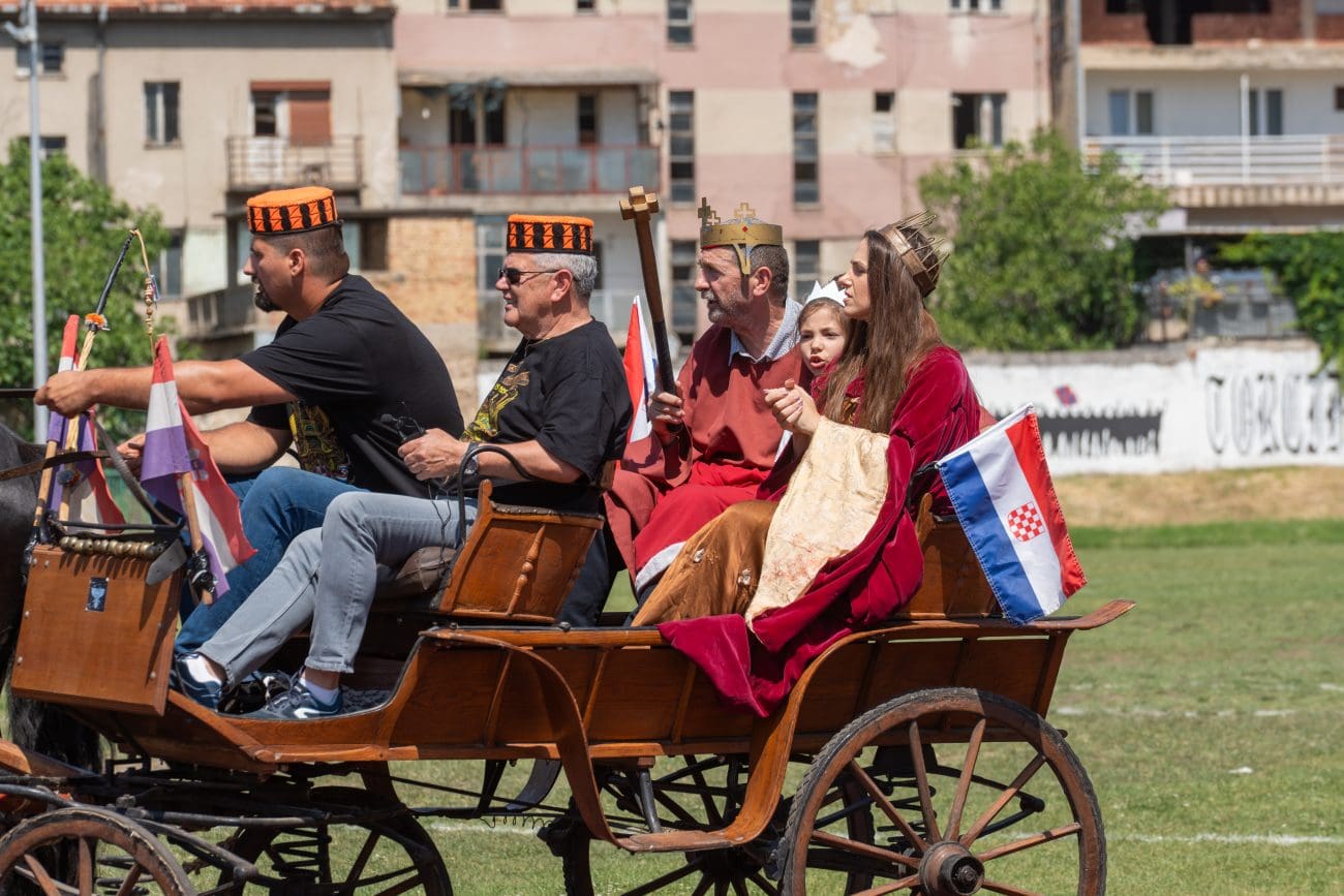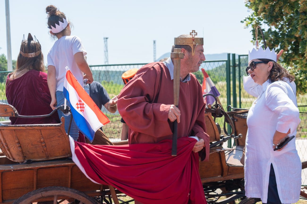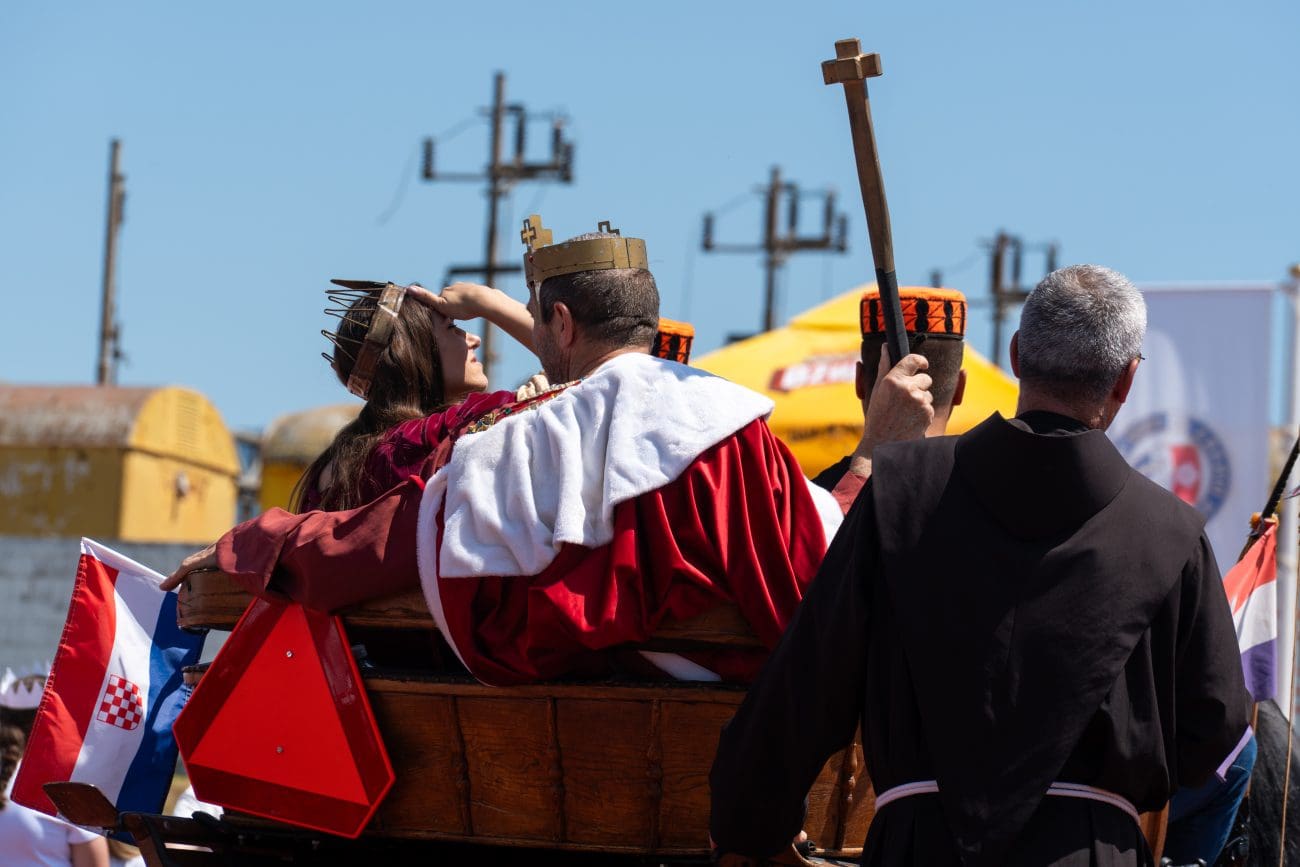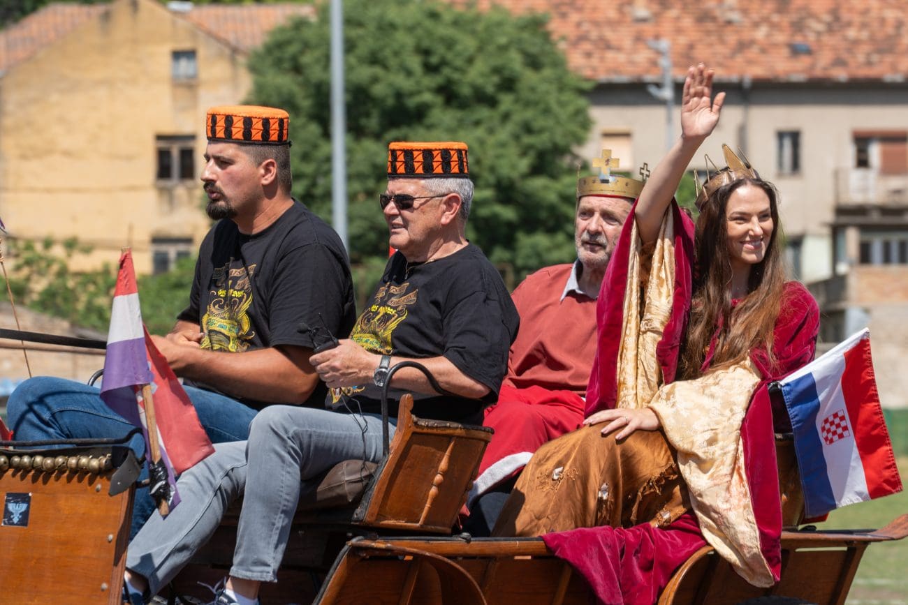 Poseban trenutak proslave bio je mimohod povijesnih postrojbi od Trga do Crkve Gospe Velikoga Hrvatskoga Krsnog Zavjeta, predvođen kraljevskom kočijom u kojoj su pristigli kralj i kraljica sa svojom pratnjom. U ulozi kralja Dmitra Zvonimira bio je upravo Tadić Šutra, dok je kraljicu Jelenu utjelovila glumica Barbara Alilović. Par je u kočiji s dva konja stigao pred crkvu, oživjevši tako važan povijesni trenutak.