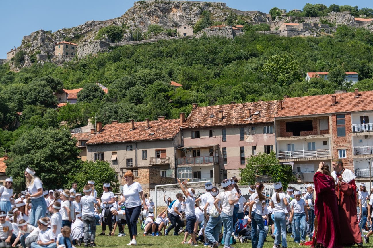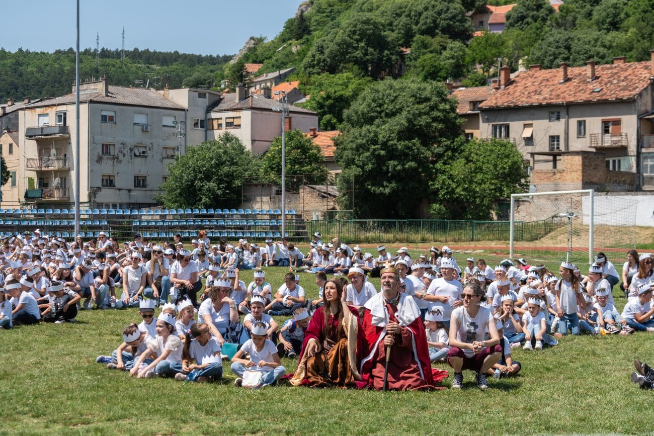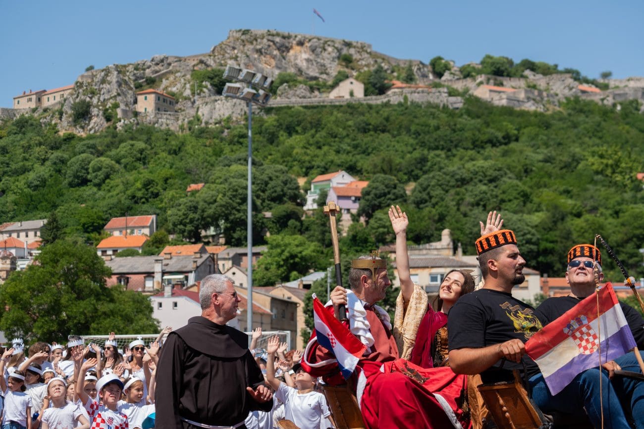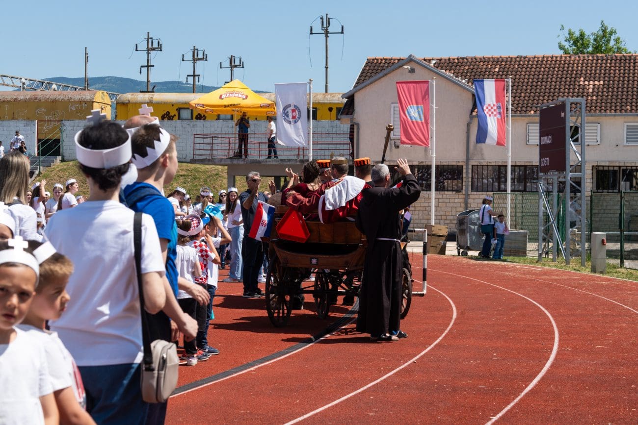 „Ovime smo htjeli ispričati priču od prvog hrvatskog kralja do posljednjeg velikog kraljevstva. Čak 1.100 djece s krunama na glavi je išlo u smotri ulicama Knina do igrališta HNK Dinara. Srednjoškolcima su se u mimohodu pridružili i učenici OŠ Domovinske zahvalnosti, učenici OŠ Dr. Franje Tuđmana, OŠ Kistanje, OŠ iz Marine te predškolska djeca Dječjega vrtića „Cvrčak“, opisuje nam Šutra.