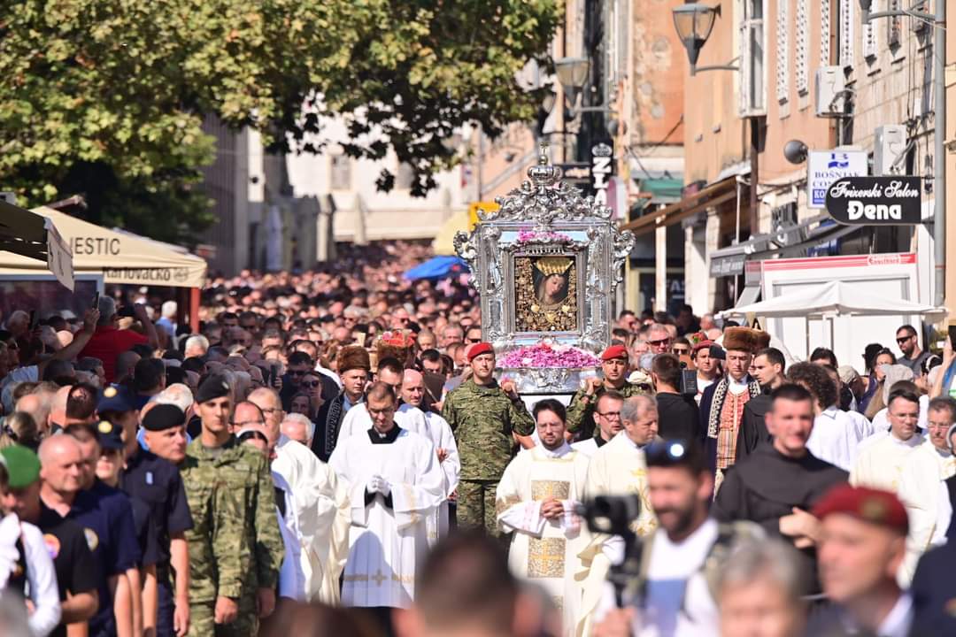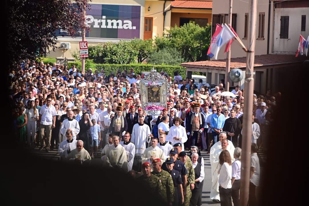 U utorak na dan Velike Gospe. Jutarnje mise će se održati 4, 5, 6, 7 i 8 sati. Na Gospinom gradu misa u 7 sati. Procesija Gradom i Sv. misa na Trgu dr. Franje Tuđmana u 9.30 sati. Predsjeda nadbiskup mons. Želimir Puljić, apostolski upravitelj Splitsko-makarske nadbiskupije. Svete mise poslijepodne: 15 i 16 sati. Večernja Sv. misa na Trgu dr. Franje Tuđmana u 18 sati. Predsjeda fra Marko Mrše, provincijal.