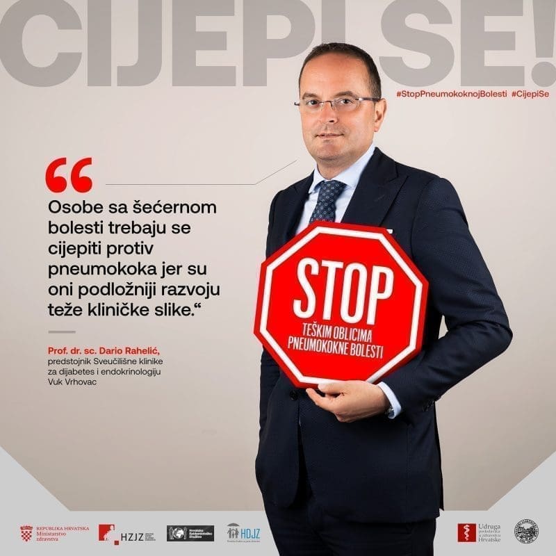 „Pneumokok je bakterija koja ima visoku patogenost i može izazvati bolesti kao što su upala pluća, meningitis pa čak i sepsu. Sve su to vrlo teške bolesti i zato toplo preporučujem rizičnijim skupinama da se cijepe. Cjepivo protiv pneumokoka već je ugrađeno u obavezni kalendar cijepljenja za djecu, ali bih cijepljenje preporučio i odraslima, naročito osobama s oslabljenim imunitetom, potom ljudima ovisnima o alkoholu, onima koji imaju cirozu jetre, koji nemaju slezenu, u skupinu rizičnih ljudi su svakako i dijabetičari te svi kronični bolesnici“, upozorio je doc. dr. sc. Marko Kutleša.