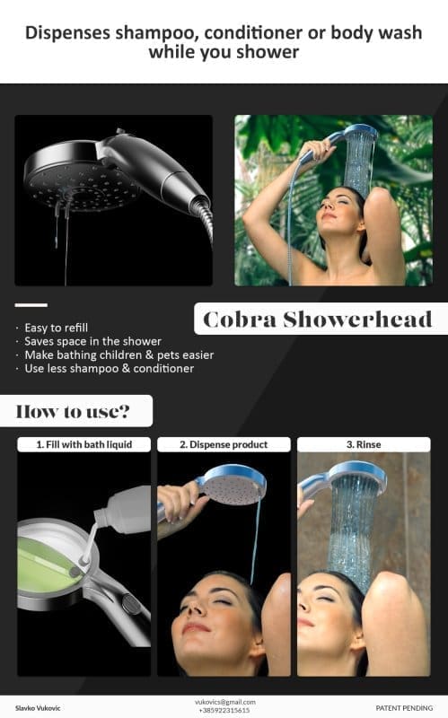Zamislite koliko bi vam olakšalo da u kupaonskoj tuš slušalici već imate gel za tuširanje i šampon, te da se sa obje slobodne ruke tuširate bez traženja bočica po unutarnjem dijelu kade. Ne morate zamišljati jer na tu je ideju već davno došao današnji vlasnik zlatne medalje koju je dobio na Međunarodnoj izložbi inovacija, prototipova i poslovnih planova Inova-Budi uzor 2023. godine za kupaonsku Cobra tuš slušalicu, Zadranin Slavko Vuković.