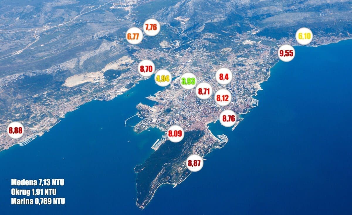 U gradu Splitu na pojedinim dijelovima i dalje je prekoračen pokazatelj "Mutnoća" iznad MDK od 4 NTU. NZJZ preporučuje mjeru predostrožnosti prokuhavanja vode za piće.