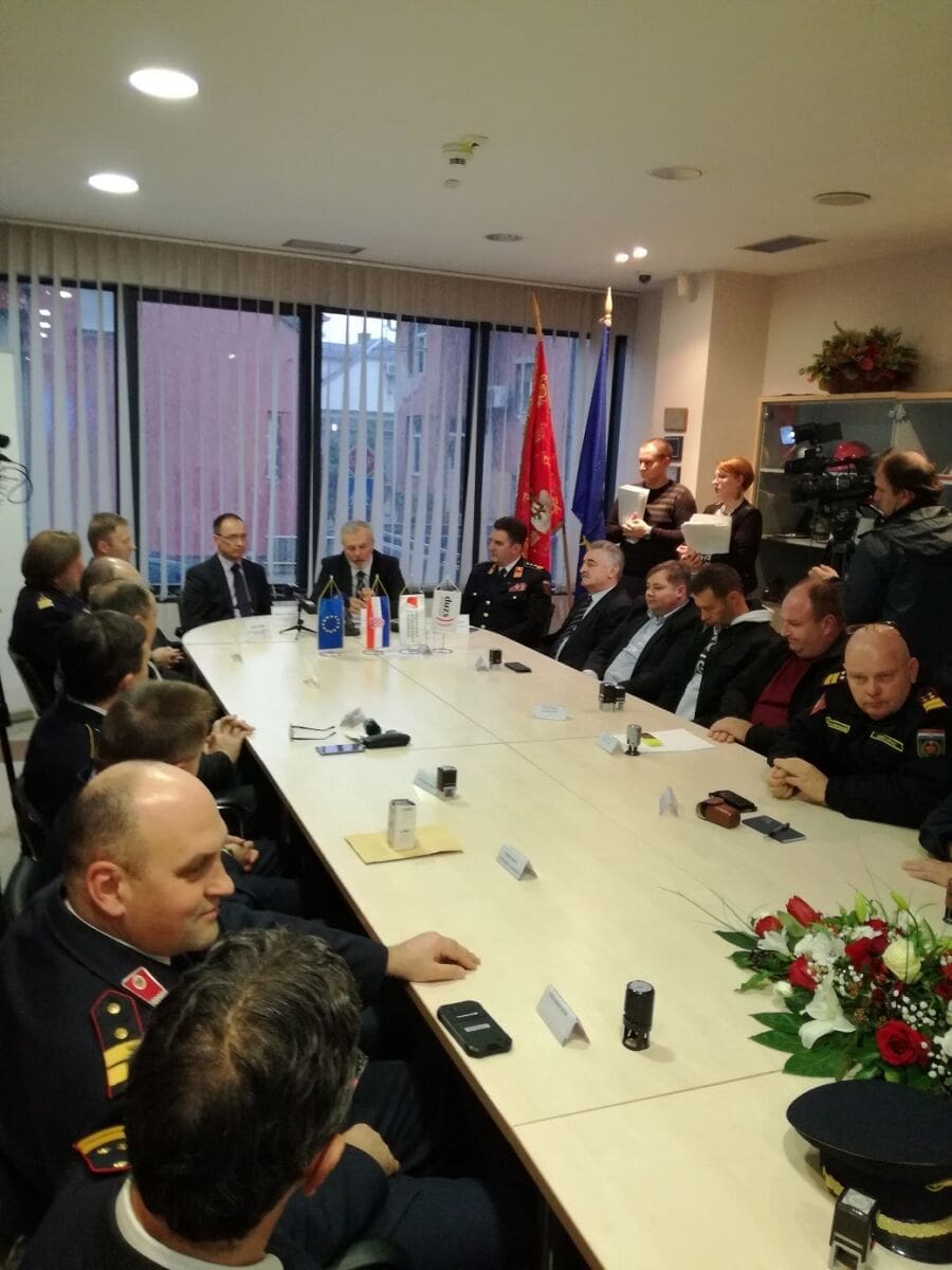 Weber, predsjednik i načelnik Hrvatske vatrogasne zajednice (HVZ) Ante Sanader i Željko Popović, predstavnici vatrogasnih zajednica županija i zapovjednici javnih vatrogasnih postrojbi.